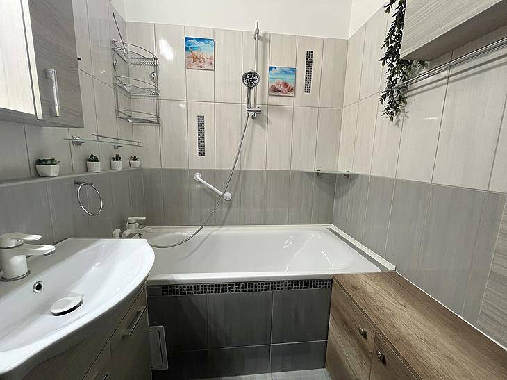 Békásmegyer hegy felőli oldalán ELADÓ egy TELJESKÖRŰEN FELÚJÍTOTT, 57 nm-es, 1+2 félszobás, franciaerkélyes lakás PANELPROGRAMOS, NAPELEMES házban!A lakás a 6. emeleten található, északi és déli tájolásának köszönhetően egész nap világos, minden ablakból gyönyörű panoráma nyílik. A nappali déli fekvésű, franciaerkéllyel kapcsolódik a külső térhez, míg a konyha és a két félszoba hűvösebb, északra néző elhelyezést kapott.A lakás teljeskörű felújításon esett át: új elektromos és vízvezeték-hálózat került kiépítésre, valamint új, hőszigetelt, redőnyös nyílászárók és biztonságos bejárati ajtó került beépítésre. A fűtést korszerű, egyedi mérős és szabályozható radiátorok biztosítják.A falak szépen gletteltek, festettek, több helyen díszítő tapétával kiegészítve, a helyiségek eltérő, harmonikus színvilággal rendelkeznek. A szobákban laminált parketta található, míg a konyha, közlekedő és vizeshelyiségek új járólappal burkoltak.A fürdőszoba modern, új akrilkádat és ízléses burkolatokat kapott, a mosógép kiállása pedig a gardrób eredeti helyén került kialakításra. A konyha is teljesen megújult: új burkolatok, modern konyhabútor, beépített mosogatógép és egy kényelmes bár/reggeliző pult teszi teljessé a teret. A nappaliból egy külön bejárható, tágas gardrób lett leválasztva, amely praktikus tárolási lehetőséget biztosít. A társasház rendezett, panelprogramos, külső hőszigetelést és napelemes rendszert kapott, amely hozzájárul az alacsony rezsiköltségekhez és a környezettudatos működéshez.Igényesen felújított otthon, kiváló elhelyezkedéssel és remek kilátással.Környékről:Közelben minden olyan szolgáltatás megtalálható amire szüksége lehet a mindennapokban (kisebb élelmiszer boltok, piac, éttermek, gyógyszertárak). Gyerekes családoknak nagyon ideális hiszen játszóterek, Óvoda, Iskola, Egyetem van a közelben.Tömegközlekedés szempontjából is tökéletes hiszen pár perc sétára található számos buszmegálló, illetve a H5-ös hév.Ha pedig kikapcsolódásra vágyik sétatávra elérhető a Duna part, ahol számos lehetőség van kikapcsolódni, sétálni, szórakozni.PARKOLÁS A HÁZ ELŐTT ÉS KÖRNYÉKÉN INGYENES.FINANSZÍROZÁS:Banki finanszírozással is megvásárolható, melyben irodánk ingyenes tanácsadással áll rendelkezésükre! Az ingatlan Otthon Start hitellel is megvásárolható.VEVŐINK RÉSZÉRE A KÖZVETÍTÉS DÍJTALAN!
