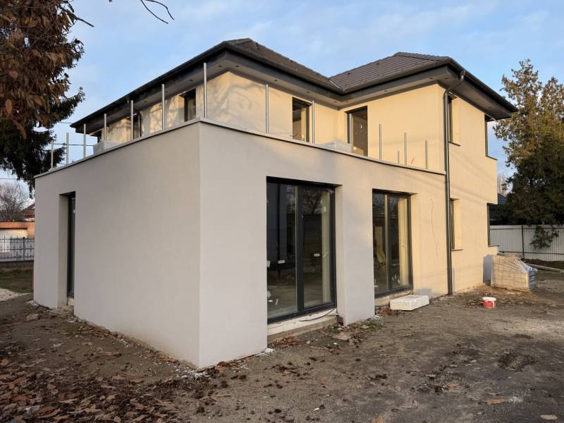 Budapest XVI. kerületében, Sashalom közkedvelt részén, az Újszász utca 35. szám alatt, 578 m²-es telken megépült, önálló, új építésű családi ház eladó megbízható, számos referenciával rendelkező kivitelezőtől.Az ingatlan elkészült, a teljes szerkezet, gépészet és külső környezet kialakítása megtörtént, már csak a burkolatok, szaniterek és beltéri ajtók kiválasztása és beépítése hiányzik, így az új tulajdonos saját ízlésére szabhatja a belső tereket.A ház nettó 166,21 m² lakótérrel és 21,59 m²-es garázzsal rendelkezik, kétszintes kialakítású, modern megjelenésű és átgondolt alaprajzú.Az épület Porotherm 30-as téglából készült, 15 cm EPS homlokzati hőszigeteléssel. A padlószerkezetbe 10 cm lépésálló hőszigetelés, a födémbe 30 cm ásványgyapot került beépítésre. A ház monolit vasbeton födémmel épült, amely kiemelkedő statikai és akusztikai tulajdonságokat biztosít. A nyílászárók 6 légkamrás, háromrétegű üvegezésűek, alumínium, elektromos redőnyökkel szerelve.A fűtést és a használati melegvíz-ellátást split rendszerű hőszivattyú biztosítja padlófűtéssel, a hűtést fan-coil rendszer szolgálja minden helyiségben. Az ingatlan H tarifás villanyórával, valamint napelem előkészítéssel került kialakításra.A földszinten egy közel 59 m²-es amerikai konyhás nappali található, közvetlen 21,83 m²-es teraszkapcsolattal. Ezen a szinten helyet kapott egy hálószoba saját fürdőszobával, egy külön fürdő az előtérből nyílóan, valamint a garázs. Az emeleten három hálószoba, egy fürdőszoba, gépészeti helyiség és egy 12,52 m²-es terasz került kialakításra üveg korláttal.Az ingatlanhoz térkövezett gépkocsi-beálló és járdák, elektromos kapu, valamint riasztó- és kamerarendszer előkészítés tartozik.A még választható belső elemek az alábbi árkategóriákig kerülhetnek beépítésre:-hidegburkolat: 10 000 Ft/m²-melegburkolat: 6 000 Ft/m²-beltéri ajtók: 80 000 Ft/db-fürdőkád: 70 000 Ft-csaptelepek: 25 000 Ft/db-épített zuhany-Legrand elektromos szerelvényekAz ingatlan ideális választás azok számára, akik már elkészült, azonnal továbbfinomítható, modern és energiatakarékos otthont keresnek Budapest XVI. kerületének egyik legkedveltebb részén.INGYENES hitel tanácsadás, CSOK Plusz - Otthon Start ügyintézés!BANKFÜGGETLEN hitelcentrumunk az összes elérhető bank és hitelintézet ajánlatát versenyezteti az Ön kedvéért, ráadásul DÍJMENTESEN.- Egyedi, bankfiókban nem elérhető kamat- és díjkedvezmények- Hitelképesség vizsgálat- Idő, energia és pénz megtakarítás- Teljes hivatali ügyintézésAmennyiben hirdetésem felkeltette az érdeklődését vagy egyéb információra van szüksége hívjon bizalommal!