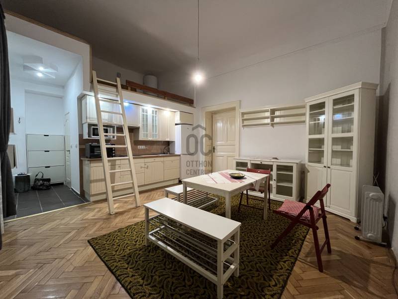 Eladó a 6. kerületben az Izabella utcában egy első emeleti, nettó 43 nm-es, 2 szobás, jó állapotú tégla lakás.A lakás 4 méteres belmagassága tágas térérzetet nyújt és lehetőséget adott két 150 cm-es magasságú galéria beépítésére is, így bruttó 55 nm-re növelve az életteret.A nagyobb, 7,2 nm-es galéria a lakás fürdőszoba feletti részén helyezkedik el, így semmit nem vesz el a nappali magasságából, illetve egy kis pakoló felület is van mellette.A nappali - konyha 21 nm - a ház belső udvarára nézA kisebb szoba 13,5 nm - utcai nézetű, itt található a másik galéria 5,25 nm.A fürdőszoba 5,5 nm, szépen felújított.Fűtése jelenleg elektromos fűtőtestekkel megoldott, de igény esetén a gázfűtés is visszaállítható.A meleg vizet villanybojler biztosítja.Közös költség: 11 000 ft/hóAz 1890-ben épült, védelem alatt álló ház belső udvara és homlokzata szemet gyönyörködtető!A négy emeletes házba a tetőtér beépítés során panorámaliftet építettek be.Nagyszerű lokációval rendelkezik, az Andrássy úthoz és a Podmaniczky úthoz is közel.Tömegközlekedése is kiváló: a Földalatti séta távolságra, 73-as, 76-os troli az utcában, 105-ös busz a közelben.Az ingatlan tehermentes és azonnal költözhető!Ha szívesen megtekintené személyesen is, keressen bizalommal!