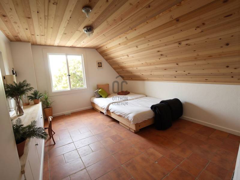 A 1994-ben épült ingatlan rengeteg lehetőséget kínál azoknak, akik tágas környezetre, jó beosztásra és kivételes telekadottságokra vágynak!Amit tudni érdemes:- A ház nettó 147 m², bruttó 197 m²- Hatalmas telek (2887 m²) – bio gazdálkodásra ideális, soha nem permetezett! 6 cseresznyefa, 2 körtefa, 8 diófa, valamint 40 méter hosszú málnatermesztésre kialakított terület várja új tulajdonosát.- 3 szint jól elkülöníthető terek, akár több generációnak is - Szuterén: 70 m², víz, villany, csatorna és gáz bekötéssel. Két nagy és két kisebb helyiség, padlólappal burkolva. Garázs vagy műhely is könnyedén kialakítható. Itt található a villanybojler (még garanciális!) és a gázkazán. - Földszint: 70 m²+ 8 m² terasz – praktikus elrendezés, otthonos terek. - Tetőtér: 34 (49) m²– a fürdőszoba kialakítása előkészítve, a vízállás kiépítve. A szobákban tölgyfa parketta.- Terranova nemesvakolat, masszív szerkezet.- Fűtés gázkazánról, megbízható rendszer.- Térkövezett udvar, rendezett környezet.ELHELYEZKEDÉS:A ház Veresegyházától 600 m-re, csendes, aszfaltozott utcában található, mégis közel mindenhez: - Volánbusz megálló: 600 m - Polgármesteri hivatal és COOP 12 perc séta Ideális választás azoknak, akik a természetközeli nyugalmat és a jó infrastruktúrát egyszerre keresik.Olyanoknak ajánlom, akik szeretnének nagy telekkel gazdálkodni, több generációnak otthont teremteni, vagy akár vállalkozásnak helyet kialakítani.Ha a leírtak és a látottak alapján felkeltettem az érdeklődését, megelőlegezett bizalmát előre is megköszönve, akár a hétvégén is várom szíves jelentkezését!Ez az ingatlan a \"Felező csomag\" megbízási portfólióhoz tartozik. Részletek az Otthon Centrum weboldalán.