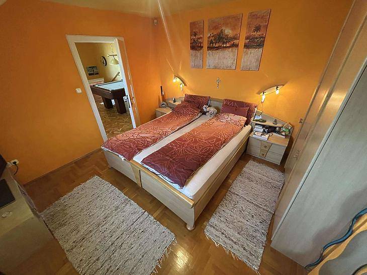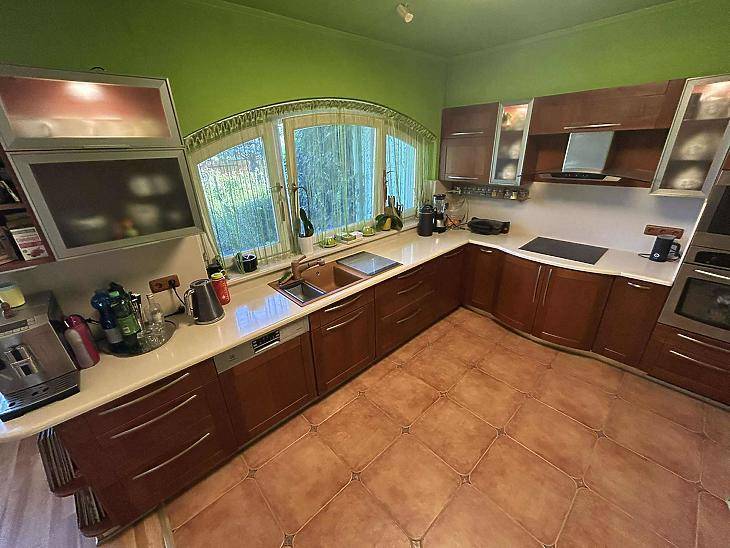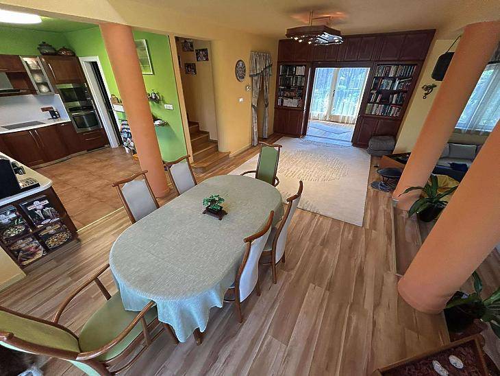 XVII. KERÜLETBEN: RÁKOSKERTEN, ELADÓ EGY 153 M2-ES, JÓ ÁLLAPOTÚ SORHÁZ, SAJÁT, GYÖNYÖRŰEN GONDOZOTT 456 M2-ES TELEKKEL, EGY 32 M2-ES HÁZ ALATTI GÉPKOCSIBEÁLLÓVAL ÉS ELEKTROMOS GARÁZSKAPUVAL. A BEÉPÍTETT, VALAMINT A TOVÁBBI BÚTORZATI DARABOK MEGBESZÉLÉS ALAPJÁN A VÉTELÁR RÉSZÉT KÉPZIK.AZ ÉPÜLET JELLEMZŐI:A ház 1999-ben épült, B38-as porotherm téglából, beton alappal és födémmel rendelkezik, a tető pedig 2014-ben került felújításra.Mindenhol fa és dupla üveges-gázos nyílászárók találhatók.A vezetékek rézből vannak.A ház melegét BOSCH gázkazán biztosítja, valamint a földszinten padlófűtés is be van vezetve. A meleg vízről pedig egy CONCEPT villanybojler gondoskodik. A fenti közlekedőben egy 5 Kw-os hűtő klíma gondoskodik a ház hűvösen tartásáról.Burkolatok a földszinten: konyhában kő, a fürdőszobában és a mosdóban csempe, míg a többi helyiségben vinyl található. Az emeleten a fürdő csempével, a többi helyiség parkettával burkolt.A telken be lett szerelve egy automatizált öntözőrendszer, valamint a telek végében egy 5 m2-es műanyag tároló is található.ELRENDEZÉS:Földszint: amerikai konyhás nappali + étkező, zuhanyzós fürdőszoba, WC + mosdó, előszoba, kazánház, tároló, 16 m2-es teraszEmelet: 3 szoba, közösségi tér, zuhanyzós fürdőszoba + WC + infra szauna.KÖRNYÉK:Rákoskert forgalomtól mentes, csendes mellékutcájában, nagyon jó közlekedésnél. A közelben, iskola, óvoda, játszótér, orvosi rendelő, gyógyszertár, számos bevásárlási lehetőség.2 perc sétára a Kucorgó tér található, ahonnan a 97E, 202E, valamint a 956-os éjszakai buszjárat érhető el.3 perc sétára találhatók a 161, 162, 201 E, 262 buszjáratok, valamint a 990-es éjszakai járat.IRÁNYÁR: 134,5 M Ft.Az ingatlan tehermentes.Hitelre is megvásárolható, melyben irodánk ingyenes tanácsadással áll rendelkezésükre!VEVŐINK RÉSZÉRE A KÖZVETÍTÉS DÍJTALAN!A hirdetésben szereplő adatok tájékoztató jellegűek.