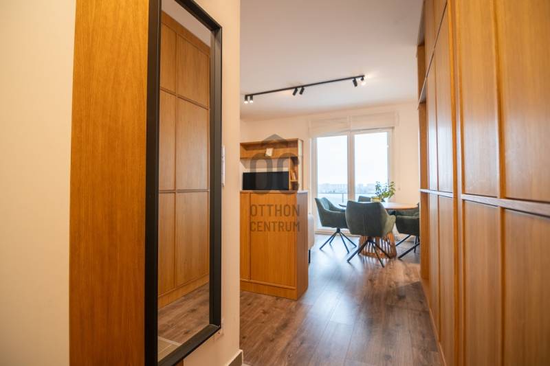 Képzelje el, ahogy minden reggelét napfénnyel és panorámával indítja, egy olyan otthonban, ahol a modern kor minden kényelme és az időtlen elegancia kéz a kézben jár. Ez nem csupán egy lakás, hanem egy életstílus ígérete, egy otthon, amely készen áll az Ön és családja befogadására.Eladó egy újszerű, 2023-ban átadott, prémium minőségű ingatlan Budapest egyik legdinamikusabban fejlődő részén, a 11. kerületben, Kelenföld szívében.Főbb jellemzői: teljesen berendezve, elegancia, kényelem, panoráma, 2 db teremgarázs beálló.Miért ez az otthon a tökéletes választás?•Ahol a fény otthonra talál: A kitűnő délnyugati tájolásnak köszönhetően a lakás rendkívül világos. A napfény körbejárja a tereket, a két nagyméretű (8 és 7 nm-es) teraszról pedig zavartalan panorámában gyönyörködhet, kortyolgatva a reggeli kávéját.•A beköltözés élménye: Felejtse el a költözéssel és bútorozással járó stresszt! Az ingatlan teljes berendezéssel – a legapróbb kiegészítőktől a gépesítésig – eladó. Csak a bőröndjét kell hoznia, és máris kezdődhet az új élet 2026. január 1-től.•Prémium minőség minden részletben: Az igényesség nem ismer kompromisszumot. A konyhában egyedileg legyártott, tölgyfa furnér konyhabútor és elegáns kerámia pult várja a kulináris élményeket.•Terek az egész családnak: A kiváló beosztású, nappali + 3 hálószobás elrendezés ideális életteret biztosít akár egy 4 tagú család számára is, ahol mindenkinek megvan a saját privát szférája. Duplakomfort, WC a fürdőszobában és külön helyIségben is.•Lokáció, ami összeköt: Kelenföld legjobb közlekedési adottságai vannak. Néhány perces sétára található a Bikás parki metróállomás (M4), a Kelenföld Vasútállomás, Autóbusz-állomás, és számos villamosjárat (1, 47, 49). Innen a város bármely pontja pillanatok alatt elérhető.Praktikus információk:*A 7. emeleti, akadálymentesen megközelíthető lakás egy rendezett, liftes társasházban található. *Helyiségenként külön szabályozható a hőmérséklet, mennyezeti fűtés/hűtés működik a ház hőszivattyú rendszeréről.*Távirányítóval vezérelhető elektromos redőnyök vannak minden külső nyílászárón.*A közös költség mindössze 30.000,- Ft/hó, amely tartalmazza a felújítási alapot, szemétszállítást, takarítást és a lift karbantartását. Minden közmű egyedi mérésű, a fogyasztás alapján fizetendő.*A ház teremgarázsában lehetőség van 2 db autóbeálló megvásárlására is, egyenként 11 M Ft áron, ahonnan lifttel közvetlenül a lakás szintjére érkezhet.Ne maradjon le erről a kivételes lehetőségről!Keressen minket bizalommal a megadott telefonszámon időpont-egyeztetés céljából, és tekintse meg személyesen leendő otthonát! Bankfüggetlen hiteltanácsadóink készséggel állnak rendelkezésére a legkedvezőbb finanszírozási lehetőségekkel kapcsolatban.