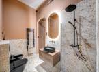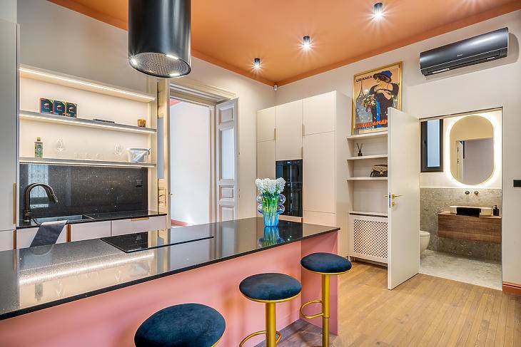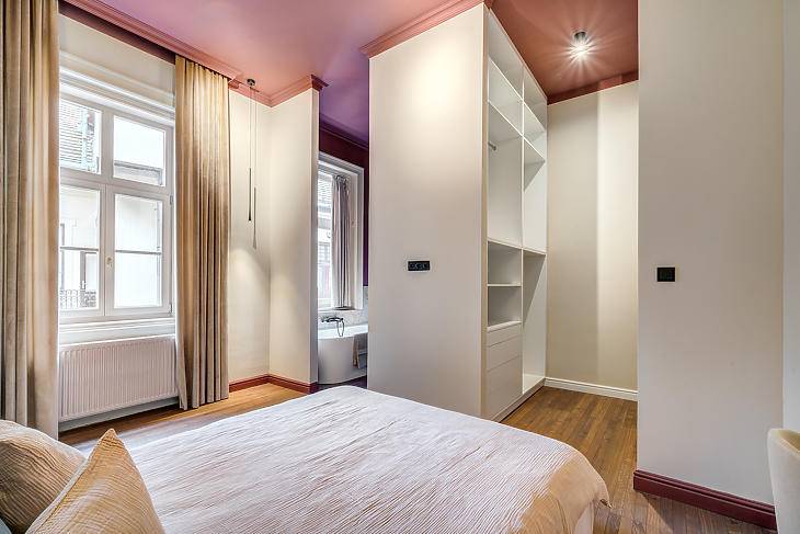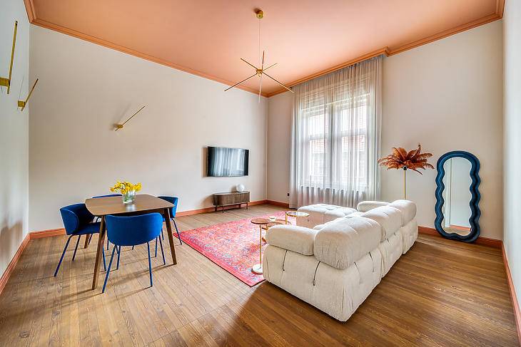 Eladó egy exkluzív, teljes körűen felújított lakás a Palotanegyed egyik elegáns, liftes társasházának magas emeletén.A 2024 harmadik negyedévében befejezett felújítás során minden részletre kiterjedő korszerűsítés történt: a víz-, villany- és gázvezetékek, valamint a külső és belső nyílászárók teljes cseréje mellett modern kombicirkó fűtést alakítottak ki, és 3 beltéri egységgel rendelkező, energiatakarékos légkondicionáló rendszer is telepítésre került.A lakás burkolatai prémium minőséget képviselnek: A vizes helyiségekben olasz Ariostea hidegburkolat található, amely nagy ellenálló képességű, elegáns felületeivel a kortárs design egyik vezető választása – luxushotelek és exkluzív középületek kedvelt anyaga világszerte. A lakószobákban fenntartható erdőgazdálkodásból származó valódi fa padlózat került beépítésre: Listone Giordano parketta, amely nemcsak esztétikájában, hanem minőségében is magas kategóriát képviseli. Ugyanilyen márkájú padlóburkolatot találunk például a Burj Khalifa mintegy 40 000 négyzetméternyi padlófelületén.Az átgondolt alaprajz szerint kialakított lakásban különnyíló hálószobákhoz saját fürdőszoba tartozik, a tágas nappali mellett pedig egy étkezésre is alkalmas, ablakos konyha, valamint egy vendégmosdó is helyet kapott.Az enteriőr kialakítása egy belsőépítész gondos munkáját dicséri – a jelenlegi berendezés döntő része; így a beépített bútorok és gépesítés is a vételár részét képezik.A lakás irányára 156.500.000 Ft Az eladó előnyben részesíti az euróban történő kifizetést, ez esetben az irányár 410.000 euró.Az adatok tájékoztató jellegűek. Vevőink részére a közvetítés díjtalan.