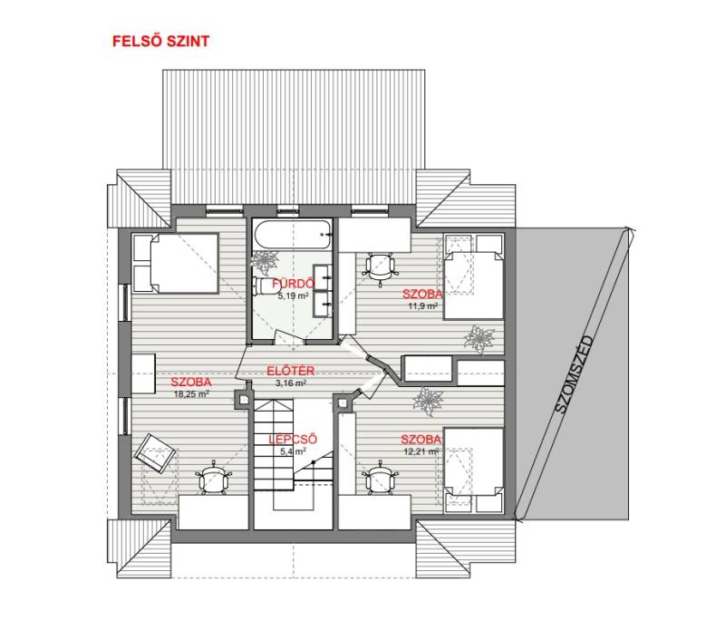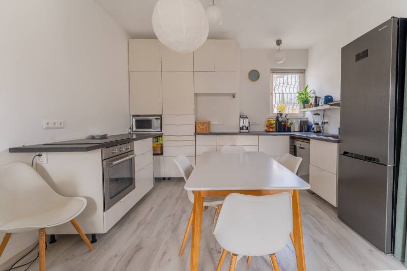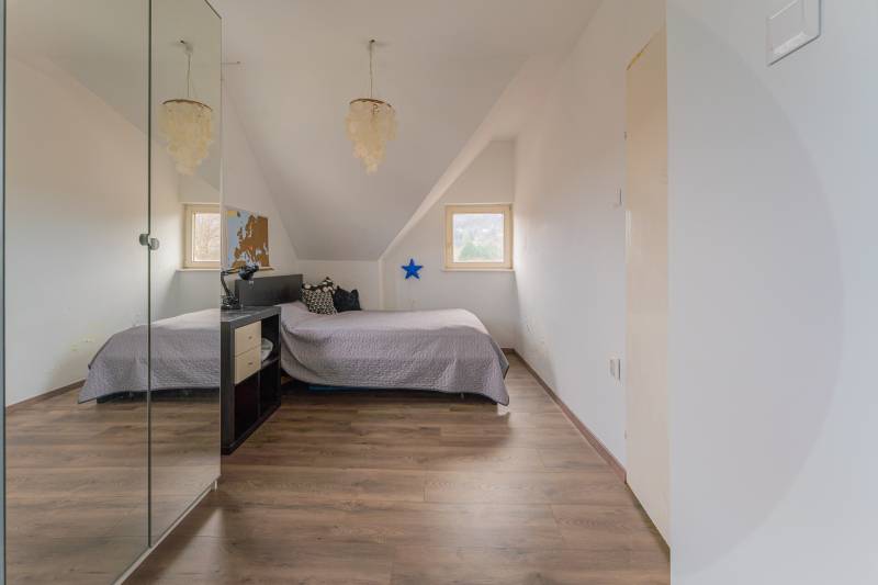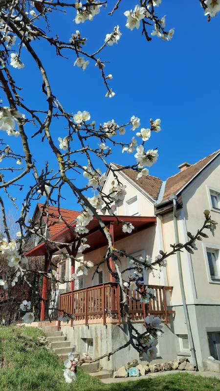KIVÁLÓ BEOSZTÁS – KERTKAPCSOLAT - ÖRÖKPANORÁMA(Ezt az ingatlant kizárólag irodánk kínálatában találja meg!)Békásmegyer-Ófalu csendes kis mellékutcájában, 341 nm-telken kínáljuk eladásra ezt az 1990-ben épült, háromszintes, 160 négyzetméter lakóterülettel rendelkező, duplakomfortos, igazán barátságos ikerházat, saját kertrésszel, terasszal, örökpanorámával.A lakóépület épületszerkezetileg teljesen független az ikerszomszédtól, önálló falazattal és külön telekrésszel rendelkezik, ami valódi családi ház érzetet biztosít. Az ingatlan saját közműmérő órákkal felszerelt, ennek köszönhetően az ingatlan hitelezhető, banki finanszírozás is igénybe vehető.Az ingatlan 2022-ben korszerűsítésen esett át, ekkor a konyha, a két fürdőszoba és a mosókonyha teljes felújítása megtörtént, illetve az ingatlanban a teljes villamos hálózat cseréje megtörtént, 3*16A lett kiépítve.A középső és felső szinten minden helyiségben új burkolat lett letéve.Az ingatlan helyiséglistája a fotók között található. Összesen 183,71 nm, melyből 137,22 nm teljes egészében lakó tér, 46,49 nm szuterén, mely területet felével lett feltüntetve a hirdetés össz négyzetméter adataiban.A ház három szinten helyezkedik el, a telek lejtésének köszönhetően az alsó és a középső szint is közvetlen kertkapcsolattal rendelkezik, ami ritka és rendkívül praktikus megoldás.A középső szinten helyezkedik el a D-NY-i fekvésének köszönhetően a napfényes, amerikai konyhás nappali, ahonnan az igazán hangulatos terasz, gyönyörű kilátással, mely közvetlen kapcsolatot teremt a kerttel – tökéletes helyszín reggelikhez, baráti összejövetelekhez vagy esti pihenéshez. Emellett még ezen a szinten található egy nagy méretű hálószoba ami igény szerint kettéválasztható, szintén van egy kijárat a teraszra és egy fürdőszoba.A legfelső, tetőtéri szinten három külön nyíló hálószoba került kialakításra, a szintet pedig egy tágas, dupla mosdós fürdőszoba egészíti ki, amely a mindennapi használat mellett a családi komfortot is maximálisan szolgálja.Az ingatlan különleges adottsága, hogy minden szobából örökpanorámás kilátás nyílik, amely a Megyeri hídtól egészen a Rókahegy lankáiig tárul fel.Az udvarban akár három autó kényelmes parkolására is van lehetőség úgy, hogy a felső kertrész és terasz teljes értékű zöld marad.Az ingatlan kiváló infrastruktúrával rendelkezik, a belváros gyorsan és kényelmesen elérhető. A 243-as buszmegálló mindössze három perc sétára található, ahonnan HÉV-vel körülbelül 15 perc alatt elérhető a belváros.A közelben üzletek, orvosi rendelő, óvoda és iskola is elérhető.Természetközeli környezet: A környék számos kirándulóhelyet kínál, a Duna-part és erdei ösvények könnyen elérhetők.Ez az ingatlan ideális választás mindazoknak, akik szeretnének közel maradni a városhoz, de értékelik a természet közelségét, a nyugalmat és a tágas, családbarát életteret.Ha szimpatikusak az Ön számára a leírtak és szívesen megnézné, esetleg valamire nem kapott választ és kérdése van, keressen bizalommal elérhetőségeimen, akár hétvégén is!Díjmentes, banksemleges hiteltanácsadót és a vásárlás zökkenőmentes lebonyolításához korrekt, kedvező áron dolgozó ingatlan szakjogászt biztosítunk!