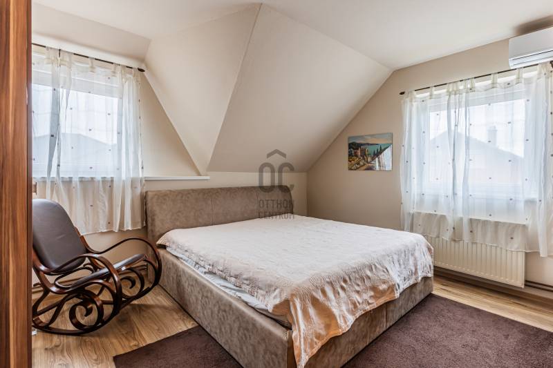 Eladó Dunakeszi egyik legkeresettebb, kiemelten jó hírű városrészén, ALAGON, egy páratlan lehetőségeket kínáló, 2 GENERÁCIÓS – 2 INGATLAN – 2 HELYRAJZI SZÁMON nyilvántartott családi ház!ÖSSZENYITVA egy tágas, 6 szobás otthonként, LEVÁLASZTVA pedig két teljesen önálló lakrészként használható!Mindez egy ritka méretű, 775 m²-es, gondosan karbantartott telken, klasszikus kertes házakkal szegélyezett, kifejezetten jól szituált utcában — Dunakeszi ikónikus ALAG városrészén.INGATLAN 1 – A bájos „mézeskalács házikó” (modernizált, hangulatos lakrész)Az 1960-as években épült, tégla falazatú otthon 10 éve teljes körű korszerűsítésen esett át:Új tetőszerkezet és modern cserép héjazatMűanyag thermo ablakokDryvit homlokzati szigetelésIgényes laminált padlók az előszobában és a szobákbanKlímák a komfortos nyári hőmérsékletértElrendezés:Tágas, több mint 20 m²-es nappaliKényelmes, 13 m²-es hálószobaNagy előszoba étkezővelFőzőfülkeFelújítást igénylő fürdőszobaINGATLAN 2 – Az 1995-ben épült, belső kétszintes, 110 m²-es családi házTágas, praktikus, nagycsaládosoknak is tökéletes elosztással:Földszinten 1 hálószobaEmeleten további 3 külön nyíló szoba2 fürdőszoba – kényelmes, gyors reggeli készülődésMinden szobában és a konyhában klímaRitka méretű, 16 m²-es konyha-étkező, ami ideális közös családi étkezésekhez, társasági eseményekhezKülönleges telekadottság – KÉT TELJESEN KÜLÖN BEJÁRAT KIALAKÍTHATÓ!A 775 m²-es telek és a két külön helyrajzi szám lehetővé teszi, hogy a két épület:akár teljesen különválasztva, átjárás nélkül működjön,akár egybenyitva egy óriási, többgenerációs családi otthonként szolgáljon.IDEÁLIS VÁLASZTÁS:✔ nagycsaládosok számára✔ két generáció kényelmes együttéléséhez✔ Passzív jövedelemre törekvőknek, akik saját lakóingatlan mellett állandó, stabil bevételt szeretnének generálni ingatlan bérbeadásából✔ összeköltözőknek, akik mégis önálló életteret igényelnekHa egy olyan ingatlant keres Dunakeszi legjobb környékén, amely ennyire rugalmasan alakítható az Ön élethelyzetéhez, akkor ezt feltétlenül látnia kell!Részletes információért vagy megtekintés egyeztetéséhez hívjon bizalommal!