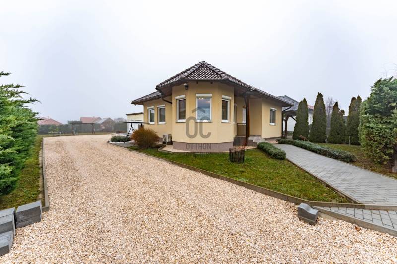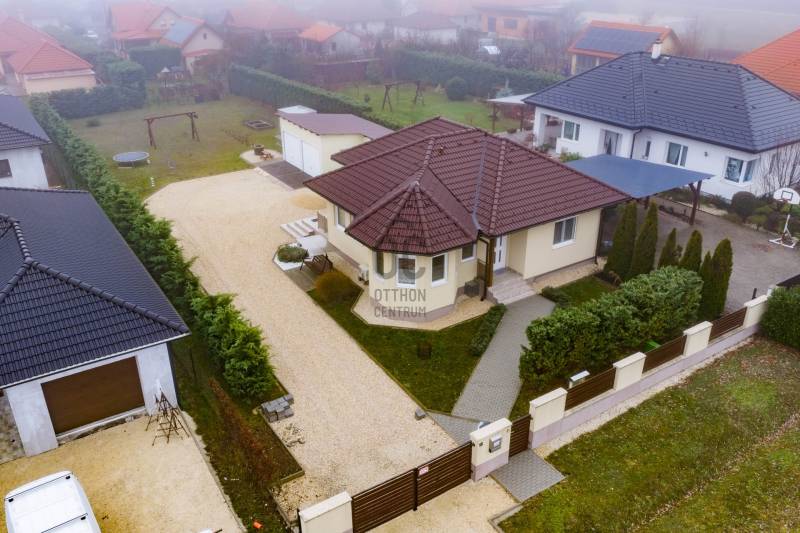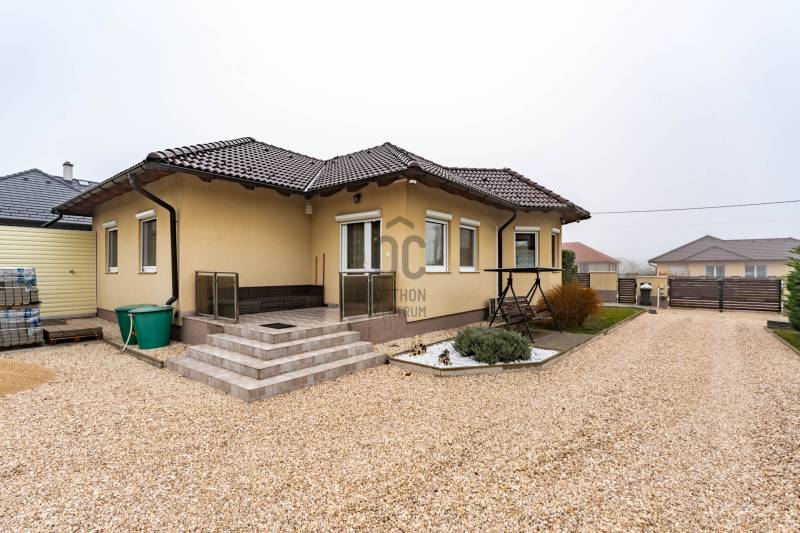 Az ingatlanról videót is készítettünk, tekintse meg weboldalunkon, a H511254 regisztrációs számra keresve!A falazat könnyűszerkezetes, készház osztrák technológiával készült, mely számos előnnyel rendelkezik:-kiemelkedő hő- és hangszigetelés, így rendkívül kedvező rezsiköltséggel működtethető,-a külső és belső falakban nagy térfogatsűrűségű (50–60 kg/m³) farostszigetelés található,-rétegrend: 5,5 mm Baumit vakolat + 60 mm vakolható farostszigetelés + 160 mm KVH fa tartóváz + 160 mm cellulóz szigetelés + 15 mm építőlemez + 40 mm belső lécváz + 12,5 mm gipszkarton,-valamint kiváló tűzvédelemmel is rendelkezik.Az ingatlan főbb jellemzői:-3 rétegű műanyag ablakok, redőnnyel és szúnyoghálóval felszerelve,-fűtés gázkazánról működik – a közlekedőben, fürdőszobában, WC-ben padlófűtés, a többi helyiségben radiátoros hőleadás,-helyiségek: 3 hálószoba, nappali, tágas konyha–étkező, WC-kézmosó, fürdőszoba,-a nappaliból közvetlen kijárat nyílik a teraszra,-az udvaron dupla beállásos garázs és egy tágas tároló is megtalálható,-nagy, sík telek – medence, játszótér vagy kerti pihenő könnyedén kialakítható,-kiváló elosztású, praktikus és élhető otthon, ideális választás családosok számára.Elhelyezkedés:Márkó mindössze 5 perc autóútra van Veszprémtől. A településen megtalálható óvoda, étterem, kisboltok, posta, gyógyszertár és orvosi rendelő – minden adott a kényelmes mindennapokhoz.Bővebb információkért és megtekintésért, keressen bizalommal!BANKFÜGGETLEN hitelben és teljes körű ügyintézésben segítünk!