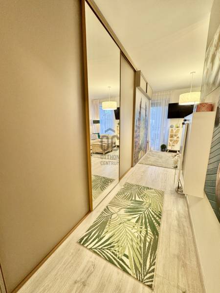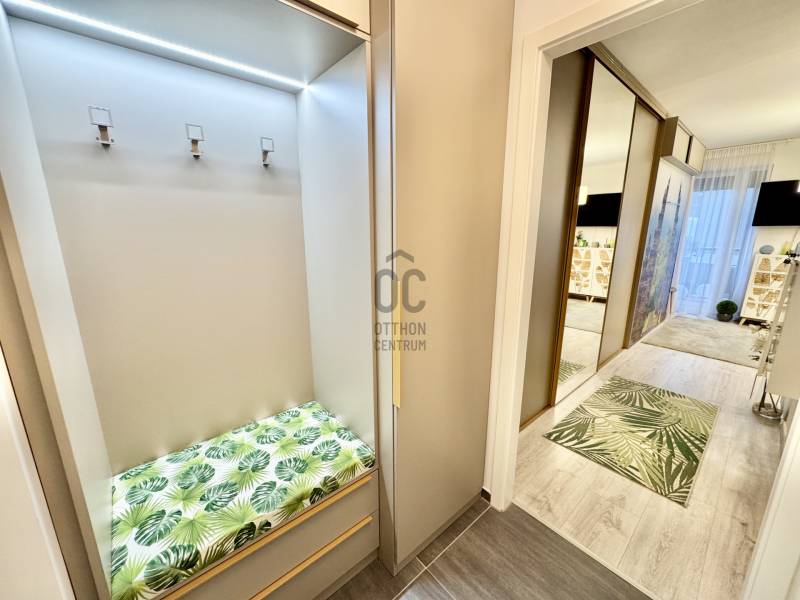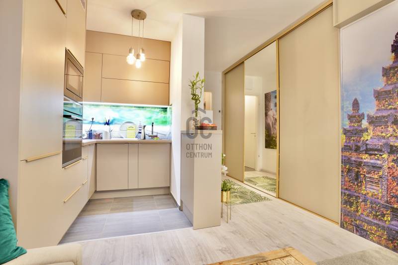 A tökéletesen megtervezett, napfényes, erkélyes stúdiólakás a III. kerületi Waterfront City-ben található — ahol a modern otthonélmény és a prémium design találkozik.A 3. emeleti ingatlan, igazi lakberendezési remekmű: minden centije átgondolt, minden funkció a helyén. Ami vár téged:- Komfortos terek, - gondosan megtervezett beépített szekrények, - tágas nappali,- 180x200-as szekrényágyas hálótér, - átgondolt konyha nagy hűtővel, mosogatógéppel, víztisztító rendszerrel, - összecsukható étkező, - otthonos fürdőszoba mosógéppel külön szárítógéppel- tágas, napfényes erkélyÚj, modern otthonod kényelméről a digitális személyzet: \"Alexa\" gondoskodik, akit akár hanggal is vezérelhetsz!Az OKOSOTTHON applikációival vezérelhetőek a redőnyök, világítás, mennyezet hűtés-fűtés, televízió, mosógép és még a sütő is.Az eladó, igény szerint a teljes berendezést átadja beleértve a mosógépet, szárítógépet, kompletten mindent, amit látsz. Ide tényleg akár egy bőrönddel beköltözhetsz. Az AA+ energiabesorolású ingatlan geotermikus mennyezet hűtés-fűtéssel rendelkezik, a fürdőszobában törölközőszárítós radiátor adja a meleget. A 3 rétegű nyílászárók szúnyoghálóval és elektromos redőnnyel felszereltek. A Waterfront City Buda egyik különleges lakóparkja, amely a jó közlekedés mellet rengeteg extra szolgáltatást biztosítja a lakók kényelmét:- a nyugalomról a kamera rendszer, a videós kaputelefon, a telepített (bővíthető) riasztó és a 0–24 biztonsági szolgálat gondoskodik- dupla lift- költségtakarékos Geotermikus mennyezeti hűtés-fűtés,- közösségi terekben ingyenes Wi-Fi- okos világítás, napelemes töltőpadok- elektromos autó töltőállomás került kiépítésre- kávézók, pékség, üzletek és fitneszterem pár lépésreA ház mélygarázsában parkoló és tároló bérelhető - ezek nem tartoznak a lakáshoz, de könnyen elérhetőek.Modern felszereltség, prémium kényelem, vízparti hangulat — ide tényleg csak költözni kell.