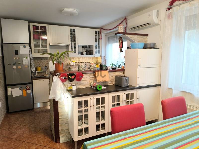 Családbarát, felújított otthon Vácon – nyugalom, tér és modern komfort egy helyenVác csendes, kertvárosi környezetében eladó egy világos, tágas, igényesen felújított családi ház, amely ideális választás gyermekes családok számára, mindössze 20 percre Budapesttől. Az amerikai konyhás nappalival és négy különálló hálószobával kialakított ingatlan kiváló térszervezésének köszönhetően hosszú távon is kényelmes otthont biztosít, akár több generáció együttélésére is.A 2005-ben épült, masszív Porotherm téglaház 2022 óta folyamatos korszerűsítésen esett át. A 255 cm-es belmagasság és a jó tájolás világos, barátságos belső tereket eredményez. A mindennapi komfortot tovább növeli, hogy minden hálószoba, valamint a nappali is klimatizált, így az év minden szakában kellemes hőmérséklet biztosított.Az energiatakarékos üzemeltetésről 10 kW-os, szaldós elszámolású napelemes rendszer, automata pelletkazán szobatermosztáttal, radiátoros központi fűtés, valamint a földszinten padlófűtés gondoskodik. A melegvízellátást 200 literes Hajdu indirekt tárolós bojler biztosítja, az elektromos hálózat korszerűsített. Az ásott kútról működő öntözőrendszer alacsony fenntartási költségek mellett teszi gondozhatóvá a kertet.A földszinten egy tágas nappali–étkező–amerikai konyha alkotja a családi élet központját, továbbá egy külön hálószoba saját fürdőszobával, amely ideális lehet nagyszülőnek, vendégnek vagy otthoni irodának. Előszoba, kamra és külön WC egészíti ki a szintet. Az emeleten három jól bútorozható hálószoba, fürdőszoba és közlekedő található, míg az alagsor tárolóként és kazánházként funkcionál.A sík, körbekerített kert biztonságos játszóteret kínál gyermekeknek, miközben gyümölcsfák, bogyós növények és szőlő teremtik meg a természetközeli életérzést. A fedett (13 m²) és a tágas, nyitott (35 m²) terasz ideális helyszín családi és baráti összejövetelekhez. Az udvaron 8 m²-es tároló, egy 3,5×7 méteres gépkocsibeálló, valamint további parkolási lehetőség áll rendelkezésre.Az M2-es autóút mindössze 2 percre található, így Budapest gyorsan elérhető, miközben a környék nyugodt, rendezett, kifejezetten családbarát. Iskola, óvoda, bevásárlási lehetőségek rövid időn belül elérhetők, így ez az ingatlan valóban ideális választás azoknak, akik hosszú távra keresnek biztonságos, szerethető otthont.A ház megvásárlásához a megfelelő önerővel „már rendelkező”, de ezenfelül akár ***banki hitelfelvétellel, akár *** CSOK+ , akár ***lakáskassza megtakarítással és akár a ***babaváró program keretében felvehető / felhasználható pénzösszegből vásárló személyek megkeresését is szeretettel várom!Ha a leírtak és a látottak alapján felkeltettem az érdeklődését, keressen bizalommal akár hétvégén is!***Az igénylési / felhasználási feltételekkel kapcsolatban, valamint ezek ügyintézésben is, az Otthon Centrum hitelközvetítő munkatársával együtt, készséggel állok az Ön szíves rendelkezésére!