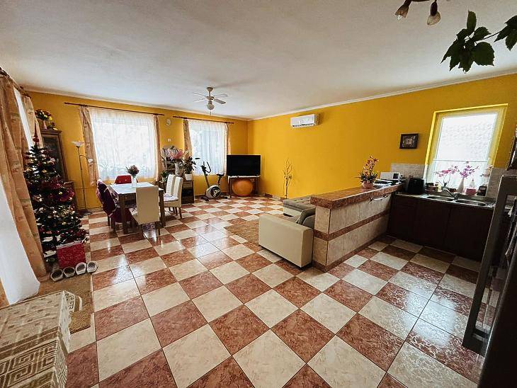 Dunakeszi közkedvelt Szabadságligeti részén, egy csendes, eldugott utcában kínálunk megvételre egy kiváló adottságokkal, jó állapotokkal rendelkező családi házat. Az ingatlan nyugodt lakóövezetben helyezkedik el, távol a főút forgalmától, így a mindennapokat zavartalan pihenés és kellemes környezet jellemzi.A ház kialakítása ideális választás nagycsaládosok számára, de két generáció együttélésére is tökéletes megoldást nyújt, mivel az ingatlan funkcionálisan két, egymástól elkülönülő lakóegységből áll.Az első házrészben egy tágas amerikai konyhás nappali és 3 külön nyíló szoba, valamint egy fürdőszoba külön wc-vel, illetve egy kis spájz került kialakításra, míg az udvar hátsó részében egy különálló, ház épült, amelyben további 4 szoba, fürdőszoba, konyha található, amely akár továbbá szét választható különálló lakásokra. Mindkét lakóegység külön bejárattal rendelkezik, így az együttélés zavartalan, mégis közelséget biztosít a családtagok számára.A lakóingatlanhoz saját, fedett autóbeálló tartozik, a kert gondozását pedig fúrt kút segíti.Az épület külsőleg 10 cm-es hőszigetelést kapott, melynek köszönhetően az ingatlan alacsony rezsiköltséggel üzemeltethető.Az ingatlanban egy nagy teljesítményű hűtő-fűtő klíma került beszerelésre, fűtése radiátoros hőleadással és padlófűtéssel is ellátott.A környék barátságos, rendezett, kiválóan alkalmas családok számára, akik értékelik a csendet, ugyanakkor fontos számukra Dunakeszi jó infrastruktúrája és könnyű megközelíthetősége.Kérdésével, illetve megtekintési szándékával keresse irodánkat! Amennyiben hitelre lenne szüksége, profi hitelközvetítő kollégáink díjmentesen állnak rendelkezésére.