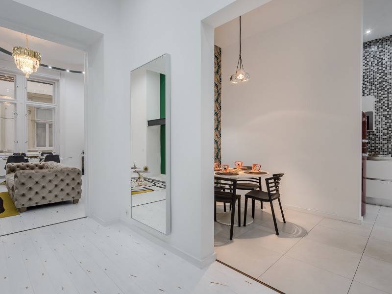 V. kerületben, Budapest kedvelt, patinás régiójában, Váci utca vonzásában található Veres Pálné utcában , jó állapotú, liftes házban várja bérlőjét ez a különleges hangulatú, rendkívül egyedi, belsőépítész által tervezett nappali + 2 hálószobás, 2 fürdőszobás , emeleti dizájn-lakás.A szobákban gardróbszekrények biztosítják a bérlők ruháinak rendezett elhelyezését.Az egyik hálóban a dizájngalériára helyezett hálóhely alatti részen még egy dolgozósarok is kialakítható.Mosókonyha, gardróbszoba , hatalmas étkező és konyha ( teljes felszereléssel ), teljes gépesítés ( mosógép, mosogatógép) áll az itt lakók rendelkezésére.Remek sétákra ad lehetőséget a közeli, hangulatos Váci utca, Duna part, Vásárcsarnok.Tömegközlekedése is kiváló, pár perc sétával juthat el a csendes utcából a nyüzsgő Ferenciek terére, ahol buszok közlekednek több irányba . ( felújítás után a 3-as Metro is )Exkluzív, otthonos, kényelmes, kiemelt régióban, kedvező áron!!Igényes bérlőt várunk lehetőleg hosszabb távú szerződéssel, 2 havi biztosítékkal.Várom hívását!