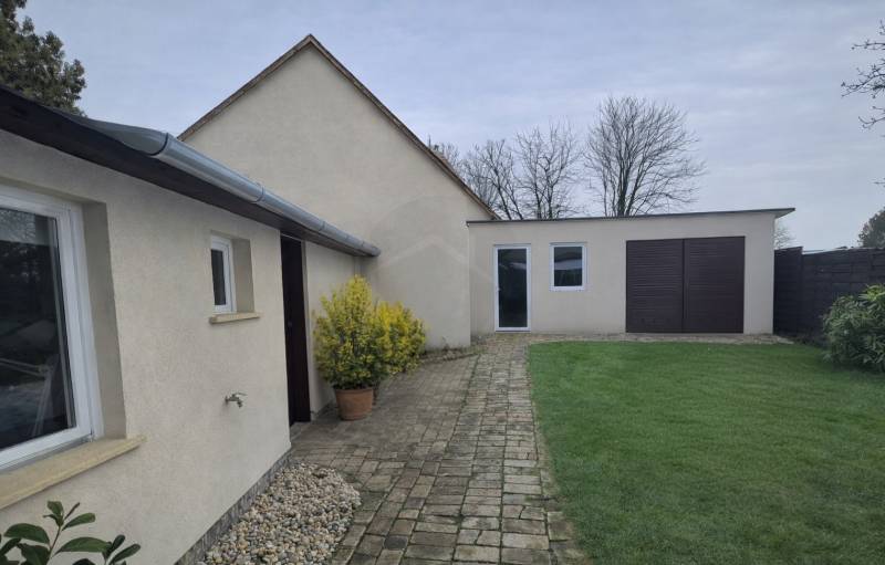 Baján kínálunk megvételre egy újszerű állapotú családi házat!Az ingatlan 65 m² alapterületű, 400 m²-es telken helyezkedik el. Falazata vegyes, homlokzata kőzetgyapottal hőszigetelt, amely kiváló energiahatékonyságot és kellemes lakókörnyezetet biztosít. Tájolása északkeleti.A ház elosztása praktikus: nappali + szoba + 2 félszoba, a szobák laminált padlóburkolattal rendelkeznek. A 3 rétegű, műanyag nyílászárók kiváló hő- és hangszigetelést nyújtanak.A fűtésről kondenzációs kazán, míg a komfortérzetről hűtő-fűtő klíma gondoskodik. Az udvar gondozását öntözőrendszer segíti, amely fúrt kútról működik, így a fenntartási költségek alacsonyak.Az ingatlanhoz egy fedett terasz, tárolóhelyiség és garázs is tartozik. Újszerű, azonnal költözhető, ideális választás fiatal pároknak, kisebb családoknak vagy befektetésnek.