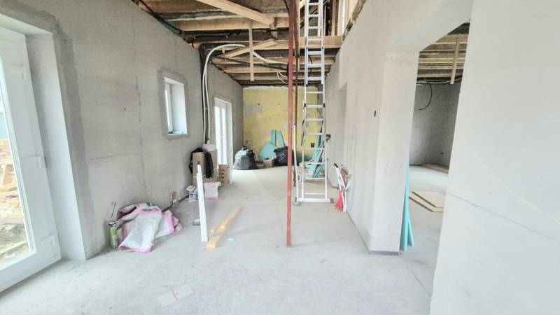 Baján, a Homokváros csendes részén kínálunk megvételre egy 375 m²-es, telken álló, kelet–nyugati fekvésű, 120 m²-es, ikerház jellegű családi otthont. Az ingatlan jelenleg felújítás alatt van, melynek a készültségi állapota mintegy 70%-os, így különleges lehetőséget nyújt arra, hogy új tulajdonosa saját stílusára és igényeire szabva fejezze be, miközben a legköltségesebb és legidőigényesebb munkák már elkészültek.A ház új Bramac cserepezésű tetőt kapott, a teljes víz-, villany- és szennyvízhálózat korszerűen kiépítésre került, új, 3×25A teljesítményű villanyórával. A padlófűtés csövezése már a szerelőbetonban található, a háromrétegű műanyag nyílászárók és a biztonsági bejárati ajtó pedig gondoskodnak a komfort és az energiahatékonyság alapjairól. A kémény elkészült, így a fűtési rendszer szabadon megválasztható.A földszinten egy tágas nappali–konyha tér, hálószoba és fürdőszoba kerülhet kialakításra, míg a tetőtérben további szoba és fürdő kaphat helyet. A hátsó melléképület pedig számos lehetőséget rejt: kialakítható belőle külön garzon, vendégház, műhely, iroda, edző- vagy wellnessrészleg, de akár kiadásra alkalmas apartman is.Az udvarban a garázs alapja már elkészült, így a parkolás fedett formában is könnyen megvalósítható. A nyugodt környezet, a praktikus elrendezés és a befejezés szabadsága együtt egy olyan ingatlant kínál, amely egyszerre jelent biztos értéket és személyre szabható otthont.Irányár: 59.000.000 Ft