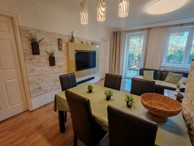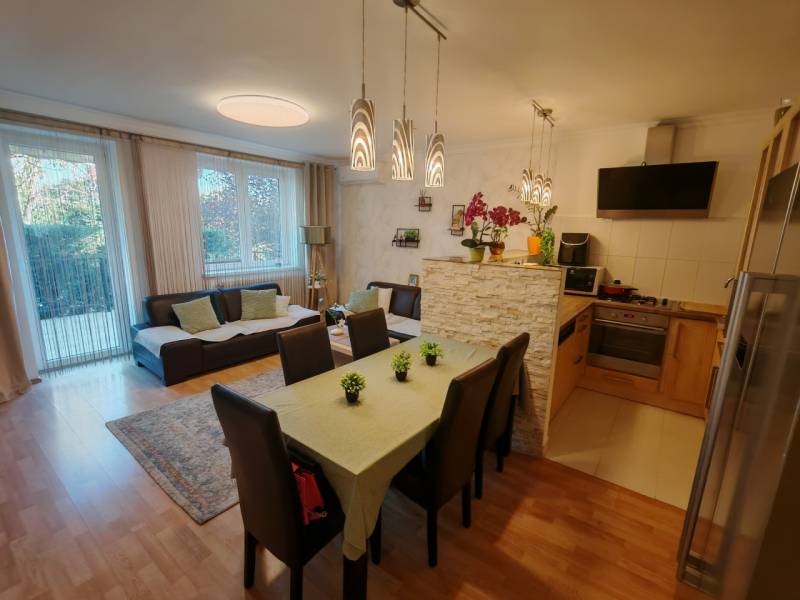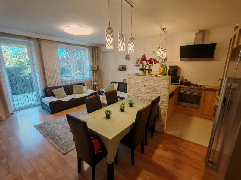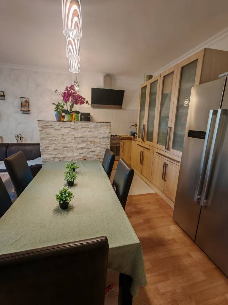 Csak nálunk!Otthon Start hitel is igényelhető!Csömör, Ibolya utca – családbarát lakás saját kerttelBudapest XVI. kerületének szomszédságában, Csömör csendes utcájában eladó egy 1990-ben épült, tégla lakás.Az ingatlan nettó 89 m² lakótérrel rendelkezik, amelyhez tartozik egy 45 m²-es garázs és mosókonyha szint, valamint egy 24 m²-es terasz, amely közvetlenül a nappaliból nyílik.Belső elrendezése:-Előszoba – 5,13 m²-Közlekedő – 5,1 m²-Amerikai nappali + étkező – 26,8 m²-Konyha + étkező – 9,18 m²-Szoba – 9 m²-Szoba – 11,1 m²-Szoba – 12 m²-Szoba – 12 m²-Fürdő – 8,13 m²-WC – 1,85 m²-Terasz – 24,1 m²A fő falak 50 cm vastag téglából épültek szigetelés nincs,de nem indokolt,mert kiváló a hőtartása az ingatlannak.Műanyag nyílászárók 2 réteg üveg 5 légkamra. Gázkazán a mosókonyhában nem a lakótérben ,radiátoros fűtéssel.2 db inverteres klíma 320 m² saját kert, amely a ház mögött helyezkedik el, így nyugodt, intim hangulatot biztosít.Garázs + 3 felszíni autóbeálló.A szomszéd lakás az emeleten helyezkedik el nyugodt csendes család kiváló hangszigetelés ügyvédi megosztási szerződés van az ingatlanhoz.Hitelezhető az ingatlan!Az kertkapcsolatos lakás ideális választás lehet családok számára, akik Budapest közelségében, mégis nyugodt, kertvárosi környezetben keresnek otthont.Kiváló közlekedés.Jöjjön el nézze meg tegyen ajánlatot!I.V.