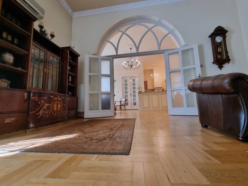 Újdonság az ingatlanpiacon, Herminamezőn, platánfák árnyékában megbújó ingatlanunk került eladósorba!A közkedvelt Amerikai úthoz közel,1918- ban épült villa épület magasföldszintjén helyezkedik el, (alaprajzon zölddel körbe jelölve látható). A ház historizáló - eklektikus stílusban épült, az építész annak idején a házat saját magának tervezte, napjainkban folyamatosan karbantartott, állapot megőrzése, illetve javítása érdekében a társasház folyamatosan törődik vele, pályázatokon indul!Egyik különlegessége, hogy a társasházba egy tekintélyes 33 nm-es külső teraszról jutunk be, majd az ingatlant egy zárt lépcsőházból közelíthetjük meg, ami a szomszéd ingatlannal kizárólagos használatban van, (a szomszéd 85 nm-es lakás szintén eladó és a kínálatunkban megtekinthető) Az ingatlan az elmúl években irodaként funkcionált, de a belső tér kialakítása alkalmassá teszi lakásként való használatra is, amerikai konyhás nappali +2 vagy kis átalakítással 3 hálószoba állhat rendelkezésre.Bejáratnál továbbhaladva rögtön megnyílik előttünk a tér, a ragyogóan napfényes nappalis konyhába érkezünk meg, valamint innen elérhető egy vendég wc, tágas dolgozó/háló aminek egy hangulatos kertre néző félkör erkélye is van, valamint helyet kapott egy külön háló és egy zuhanyzóval beépített tágas fürdőszoba is.Fűtése önnáló gáz církó, tájolása d-dnyi ezért napos, világos, klímával felszerelt, rezsije alacsony gáz és az elektromos áram költsége átlag: 20.500 ft/hó. Állapotát tekintve igényes, rendezett, a fotón látható bútorok igény esetén külön megegyezés alapján megvásárolhatóak.Parkolásra egy autónak 13,5 nm-es garázs áll rendelkezésre, ára 10 mft, amit a vételár nem tartalmaz. További tároló a pince szinten rendelkezésre áll.Remek lokációnak köszönhetően egyaránt ajánlom családosoknak, vagy vállalkozóknak is, hiszen egyaránt kiválló lakni, vagy irodai használat céljából is. A közvetlen közelben megtalálható tömegközlekedés, bevásárlási lehetőség, iskola, óvoda stb.Időpont egyeztetésés alapján megtekinthető!