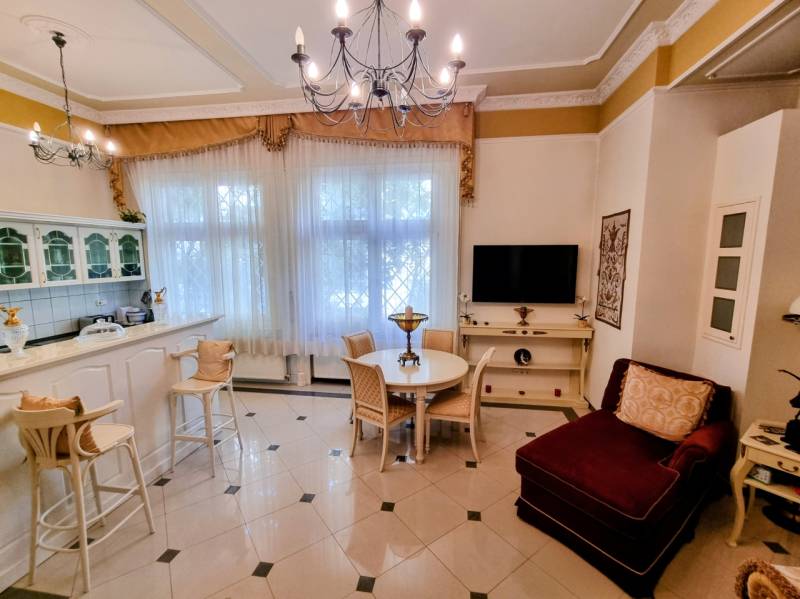 Herminamezőn stílusos villa épületben, 2 lakás egyben eladó!A társasház 1918- ban épült, historizáló - eklektikus stílusban, az építész annak idején a házat saját magának tervezte, napjainkban folyamatosan karbantartott, állapot megőrzése, illetve javítása érdekében a társasház folyamatosan törődik vele, pályázatokon indul!Eladó ingatlanok a magasföldszinti szinten helyezkednek el, 85 illetve 86 nm nagyságúak, a bejáratok egy kizárólagos használatban lévő lépcsőházból közelíthetőek meg. Több egyediséggel is rendelkezik: a társasházba szintén egy kizárólagos használatban lévő nagy, 33 nm-es teraszról jutunk be, ezáltal a társasháztól kicsit elkülönül, de mégis a részét képezi, minden időszakban beragyogja a nap, hiszen tájolás szempontjából k-ny-i irányú, két félkör erkéllyel is rendelkeznek, egyben és külön is használható, utóbbi években az alaprajzon zölddel jelölt ingatlan irodának, míg a lilával jelölt lakásként volt használva.Kifejezetten előnyös két generációs otthont keresőknek is, külön mérőórákkal és fűtési rendszerrel, konyhákkal, fürdőszobákkal rendelkeznek, tárolásra pincében 17 nm-es tároló, míg a kertben gépkocsinak garázs,+ 10 mft amit a vételár nem tartalmaz, valamint felszíni kocsibeálló állhat rendelkezésre.Kifejezetten igényesek, szép állapotúak, klímával felszereltek, bútorok igény esetén megvásárolhatóak.Lokáció rendkívül jó, Zugló egyik legkeresettebb részén helyezkedik el, tömegközlekedéssel könnyen megközelíthető, ezért vállalkozás céljából vásárlóknak is ajánlom, ügyvédi vagy könyvelőiroda, orvosi rendelő, igények szerint bármilyen tevékenység elképzelhető benne.A környék nyugodt és családias, ideális választás azok számára, akik a város közelségét keresik, de értékelik a zöld környezetet is. Ez a lakás tökéletes választás lehet azok számára, akik elegáns és kényelmes otthont keresnek Budapest egyik legkedveltebb részén.Időpont egyeztetéssel rugalmasan megtekinthető!