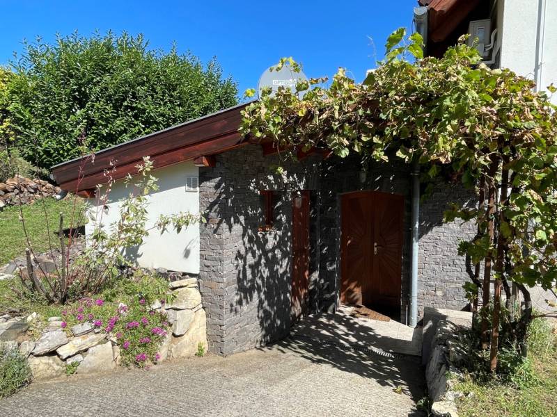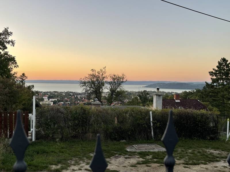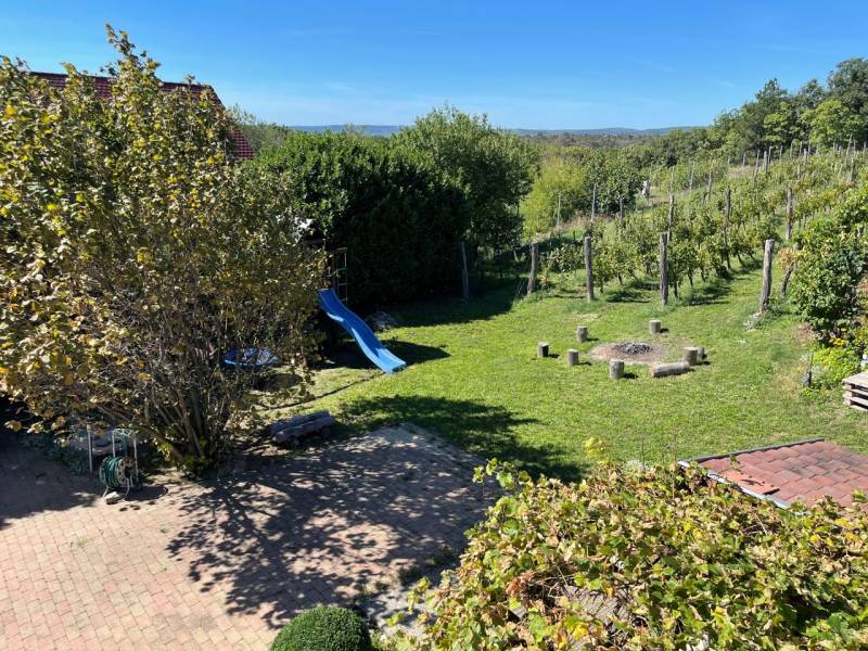 Panorámás szőlőhegyi ház Balatonfüreden – borospince, terasz, nagy telek!Balatonfüred csendes szőlőhegyi részén, 1868 m²-es telken eladó egy 158 m²-es kitűnő állapotú, igényes, Tihanyra néző panorámás ház téglaboltozatos borospincével, tágas terasszal, modern gépészettel és gondozott szőlővel. Az ingatlan Balaton-felvidék hagyományos stílusát és a kortárs építészet kifinomultságát ötvözi.Természetes, nemes anyagokból, helyi mesterek munkájával készült, így minden részlete a minőséget és tartósságot tükrözi.A ház a Balatonra nyíló panorámával és a természet nyugalmával ajándékoz meg, miközben Balatonfüred pezsgő élete néhány perc alatt elérhető.Főbb adatokHelyszín: Balatonfüred, szőlő besorolású telekTelek mérete: 1868 m² (gondozott szőlővel, díszkerttel, csúszdás mászókával, tágas parkolóval)Épület bruttó alapterülete: 158 m²Pince + földszint + tetőtér + borospince padlófűtés, extra radiátorok, sütőfunkciós cserépkályha, napkollektor – energiatakarékos kivitelPanorámás elhelyezkedés, természetvédelmi övezet mellettAz épületL-alakú, több szinten kialakított ház, tető- és homlokzatszigeteléssel, kettős hódfarkú betoncseréppel fedveTeljes alápincézés: tárolóhelyiség, infraszaunás, padlófűtéses fürdőhelyiség, gépészeti helyiségBorospince: földdel fedett téglaboltozatos, külön szellőzőkkel, tölgyfa ajtókkal, felülvilágítássalFöldszint: nappali + étkező (19,8 m²) + konyha (7,2 m² ) légtérben split klímával, vendégszoba (8,9 m²) + zuhanyzós fürdő (2,4 m²)Emelet: 2 hálószoba (20 és 10,2 m²) split klímákkal, sarokkádas fürdő (4,1 m²), külön WC (1,6 m²), tárolóKiegészítők: cserépkályha, infraszauna, félköríves terasz (25 m²), melynek burkolata felújításra szorul, így lehetőséget biztosítva a további egyéni igények kialakítására.Felszereltség és extrákViessmann gépészet: a tetőn elhelyezett napcellákkal a 705 l szünetmentes tápegységgel kiegészített puffertároló egész nyáron melegvizet, télen fűtésrásegítés funkciót biztosít.Fűtés: a föld alatti 5 m3-es propángáz tartály biztosítja a padlófűtést minden szinten, a nappaliban cserépkályha sütőfunkcióval, split klímák, a fürdőkben plusz törölközőszárító radiátorok.Nyílászárók: spalettás hőszigetelt tölgyfaablakok, mozgás-nyitásérzékelő riasztórendszerrel, kamerákkal.Szennyvíz: földalatti zárt szippantós.Kapcsolatok: meglévő UPC tányér és bevezetett telefonkábel, WIFI Extra: cserépkályha és infraszauna.Kert és telekTérkövezett parkoló, akár 5-6 autó részére1868 m² telek, melynek 80%-a gondozott szőlő (rizling, muskotály, csemegeszőlők)Vadkerítés, elektromos úszókapu, nagy parkoló világítássalCsepegtetőrendszer a díszkerthez, a szőlőben mozgásérzékelő reflektorok Játszótér: fa mászóka, csúszda, dupla hintaKerti tároló.ÁllapotÚjszerű, megkímélt állapotFolyamatosan karbantartvaEz az ingatlan tökéletes választás mindazoknak, akik Balatonfüreden keresnek nyugodt, panorámás környezetben épült, hivatalosan és szabályosan megépített gazdasági épületet, pince- és borospince-kapcsolattal, teljes infrastruktúrával, energiatakarékos gépészettel.