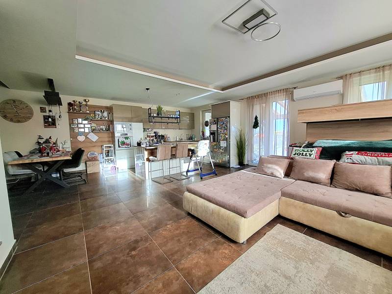 Tökölön aszfaltos utcában, új építésű házak szomszédságában, eladóvá vált egy 2022-ben átadott mediterrán stílust képviselő, nettó 147 m2 alapterületű családi ház!CSOK PLUSZ feltételeinek maradéktalanul megfelelő ingatlan, per és tehermentes.A családi ház 742 m2 összközműves telken helyezkedik el.Vasalt beton alapra, Porotherm tégla falazattal, mediterrán beton cserép fedéssel épült, elismert, kiváló referenciákkal rendelkező kivitelező által.Az otthon melegét és a használati meleg vizet,korszerű Ariston 32 KW kondenzációs kazán biztosítja, a téli esték meghitt hangulatáról a médiafalba épített elektromos kandalló gondoskodik, a nyári melegben a kellemes hőmérsékletért két inverteres .klíma felel.Az épület külső nyílászárói (ablakok) műanyag szerkezetűek 6 légkamrás 3 rétegű hőszigetelt üvegezéssel, redőnnyel és szúnyoghálóval szereltek. A bejárati biztonsági ajtó több ponton záródó biztonsági ajtó.A homlokzaton 10 cm grafitos Dryvit rendszerű, a födémben 20 cm szálas szerkezetű, míg a padlóban 10 cm lépésálló nikecell szigetelés került beépítésre.A kapu automatizált, a nappaliban lévő redőnykönyök motorizáltak.Helyiségei: Előtér 4,6 nm, amerikaikonyhás nappali teraszkapcsolattal 51,9 nm (fedett terasz 25,5 nm), 4 lakószoba egyenként 9,3 nm, 10,5 nm, 10,5 nm, 10,9 nm, fürdőszoba káddal zuhannyal 7,2 nm, fürdőszoba zuhanyzóval 3,8 nm, mosókonyha 5,6 nm, gardrob 3,6 nm, közlekedő 11,1 nm, kamra 5,3 nm, wc 1.1 nm.A fákkal tarkított udvarban két autó számára térkövezett beálló épült,a kerti szerszámoknak pedig egy 25 nm-es tároló. A fedett terasz lábánál 15 m3 kerti tó víztisztító berendezéssel, feledteti egy fárasztó nap minden gondját! A kert öntözése fúrt kútról történik.Extrák, kényelmi felszereltség:-3,6 kw napelem-automatizált kapu-motorizált redőnyök a nappaliban-épített média fal, elektromos kandallóval-klimatizált nappali-fedett terasz-fúrt kút öntözéshez-15 m3 kerti tóCsaládbarát környezet, új építésű házak között, fiatalos, barátságos, összetartó lakóközösségben, ahol jó érzés hazatérni és jó érzés elindítani a közös jövőt.Az ingatlan permentes, csak Ti hiányoztok belőle!Ne várjatok az álomotthonra, ez készen áll Rátok!Az ingatlan kertje építés alatt áll, a kültéri ajánló fotók AI által generáltak.FINANSZÍROZÁS:Nálunk mindent egy helyen intézhet:- hivatalos ingatlanközvetítés;- szakszerű jogi képviselet;- profi CSOK-PLUSZ, és hitelügyintézés: 16 Bank, több mint 100 konstrukció;VÁROM MEGTISZTELŐ HÍVÁSÁT!A részletes adatvédelmi tájékoztató folyamatosan elérhető a gdn ingatlan adatvédelmi oldalon.
