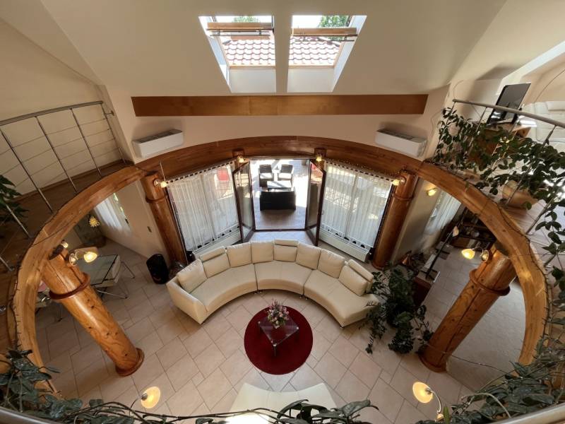 Exkluzív családi ház Veresegyház legszebb, zöldövezeti részén!Nyugodt, természetközeli környezetben kínálunk megvételre egy magas műszaki tartalommal, kifinomult ízléssel megépített prémium családi otthont, amely a tágas élettereket, az időtálló minőséget és a privát életstílust helyezi előtérbe.Reprezentatív terek & elegáns arányok:• 297 m² gondosan megtervezett lakótér• 6 méteres belmagasságú, különleges kivitelezésű, galériás nappali, kandallóval• nagyvonalú amerikai konyha kényelmes étkezővel• többfunkciós tetőtéri szint – hatalmas dolgozószoba, hálószobák, vendégtér vagy privát lakrész kialakításáraA belső terek tágas és harmonikus arányai, valamint a természetes fény jelenléte jellemzi az egész épületet.Prémium anyaghasználat & beépített megoldások:• porotherm téglából épült, szigetelt ház• különleges, fa oszlopos tartószerkezetek• számos egyedileg tervezett beépített bútor• diszkréten integrált tárolómegoldások• minőségi kivitelezés, időtálló részletekPrivát kert & kültéri luxus:• 800 m²-es, parkosított, intim kert• automata öntözőrendszer kiépítve• 60 m²-es DNy-i tájolású, fedett terasz, székely dézsával• két különálló faház - egy kisebb és egy nagyobb tároló• tökéletes helyszín pihenéshez, családi eseményekhez, vendéglátáshozKényelmes parkolás & praktikum:• garázs• fedett autóbeálló• bőséges tárolási lehetőségek a telken és az épületen belül isKorszerű technológia & fenntartható komfort:• padlófűtés kondenzációs kazánról, radiátorokkal kiegészítve• alternatív megoldások: kandalló, ionkazán• napelemek, napkollektor, klímaberendezések• víz kezelő rendszer, riasztó• energiahatékony, tudatosan kialakított gépészetKitűnő lokáció – természet és elérhetőség egyensúlya:• Csendes, zöldövezeti környezet• Budapest gyorsan és kényelmesen elérhető• Ideális külföldi vásárlók számára is, akik értékelik a repülőtér közelségét és a prémium életstílustEz az otthon azok számára készült, akik nem kompromisszumokban, hanem életminőségben gondolkodnak.