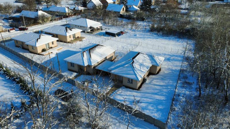 Kókán eladó 4db újépítésű ikerház külön kerített 530 m2 telkeken az Újvilág utcában!A házakat fedett gépkocsibeállóval kötik össze, így nincs közös fal.Az utcafronti házak ára 61.9m, a hátsó 58.9m Ft.-Telek mérete: 530 m²-Nettó hasznos alapterület: 97 m²-Földszintes ikerfélKivitelező és referencia:A kivitelező több azonos terv alapján készült ingatlant valósított meg Sülysápon és KókánElérhető támogatások:-CSOK Plusz-Otthon StartSzerkezet és szigetelés:-Falazat: 30 cm nútféderes tégla-Födém: fafödém-Tetőfedés: antracit színű betoncserép-Homlokzat: 15 cm EPS hőszigetelés-Padló: 10 cm Austrotherm AT-N100 szigetelés-Vízszintes födém: 25 cm ásványgyapot szigetelésNyílászárók:-Hat légkamrás, háromrétegű üvegezéssel szerelt ablakokFűtés:-Monoblokkos hőszivattyús rendszer-PadlófűtésAlap műszaki tartalom (választható keretösszegekig):-Hidegburkolat: 3.000 Ft/m²-Melegburkolat: 3.000 Ft/m²-Csaptelepek: 15.000 Ft/db-Kád vagy zuhanyzó: 40.000 Ft-Beltéri ajtók: 35.000 Ft/dbElektromos kiépítés:-Szobánként 3 konnektor-Nappaliban 4 konnektor + internet és kábel TV kiállás-Konyhában 6 konnektor-Világítás helyiségenként 1 pont-Kábeltévé előkészítésTovábbi lehetőségek:-Magasabb kategóriájú műszaki tartalom is választható a különbözet finanszírozásával-Riasztórendszer előkészítés-Kapumozgató elektronika előkészítésIgény esetén komplett tervdokumentáció és részletes műszaki leírás biztosítottÁtadás:2026. II. negyedévTeljes körű ingyenes tanácsadás, hitelügyintézésIntor Ingatlan
