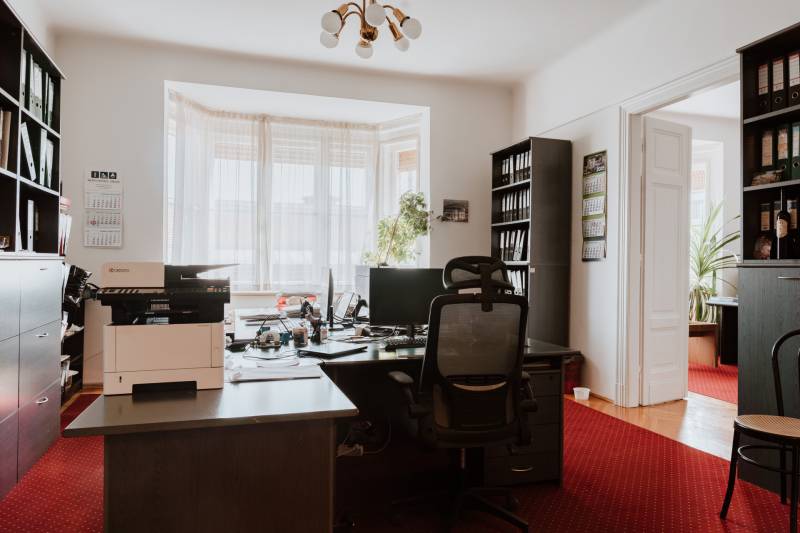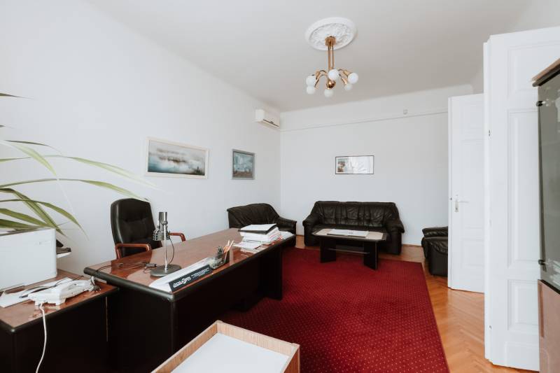 Exkluzív megvételre kínálunk Budapest V. kerületének Honvéd utcájában, az Alkotmány utca és a Parlament közvetlen közelében, egy 111 m²-es, 4. emeleti lakást egy impozáns, műemlék társasházban.Az ingatlan jelenleg iroda, de adottságai révén könnyen átalakítható rendelővé vagy egy tágas, elegáns otthonná. A lakás világos, délelőtti órákban napfényes, tágas szobákkal rendelkezik, a tárgyaló jelenleg az egykori konyha helyén található, így különleges elrendezést biztosít.Főbb jellemzők:- 4. emelet, liftes, műemlék társasház.- Alapterület: 101 m², jelenlegi elosztás: 4 szoba + konyha + előszoba.- Fürdőszoba jelenleg nincs kialakítva, két illemhely áll rendelkezésre.- Gáz ki van kötve, visszakötés könnyen megoldható.- Házközponti fűtés, lakásonként egyedileg szabályozható.Társasház:- Rendezett, impozáns műemléképület.- Homlokzat felújítva 5 éve.- Jelentős megtakarítás a ház kasszájában- Közös költség: 56.000 Ft/hó, víz- és fűtéssel együtt.Elhelyezkedés:A Belváros szívében, kiváló közlekedéssel, a Duna-part, a Parlament, kávézók, éttermek és üzletek közvetlen közelében. A környék kulturális és gazdasági szempontból is kiemelkedő, ideális helyszín irodának, rendelőnek vagy otthonnak.Megtekintés:Heti két alkalommal, munkaidő után, előre egyeztetett időpontban.