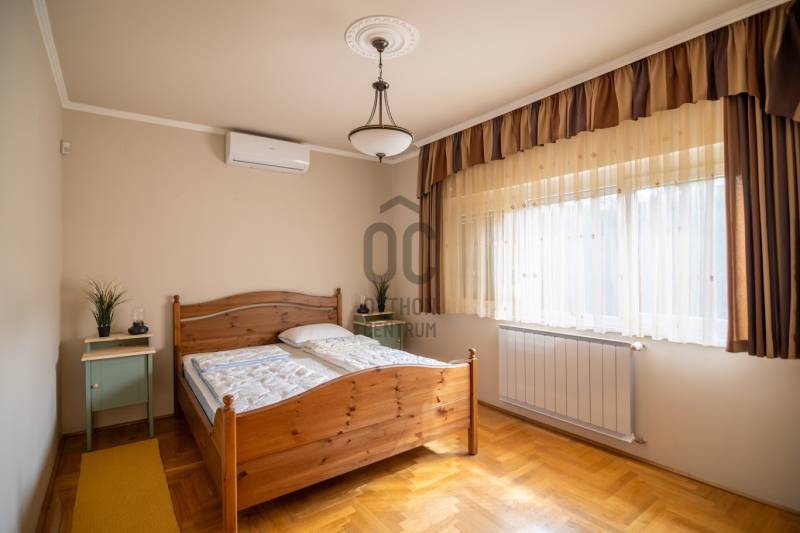 Eladó igényes, saját részre épített családi ház Budafok csendes részén – 108 m² + 36 m² mélygarázs, gyönyörű parkosított kerttelBudafok legfelkapottabb kertvárosi részén, a Tegzes utca környékén lévő, csendes kis utcában, egy 760 m²-es, saroktelken elhelyezkedő, gondosan megépített, kiváló állapotú családi ház eladó. Az ingatlan 2006-ban saját részre épült, pince + földszint kialakítású, összesen a garázzsal együtt 132 m² hasznos alapterülettel.Főbb jellemzők:-Alapterület: 132 m² (nappali + helyiségek + garázs) +25 m² terasz-Telek mérete: 760 m² – gondozott, parkosított kerttel, gyümölcsfákkal, kerti sütögetővel-Építés éve: 2006-Energetikai besorolás: DElosztás, helyiségek:-Tágas nappali-2 hálószoba + 1 félszoba (dolgozó/gardrób célra is alkalmas)-Gardróbszoba-Külön konyha + kamra-10 m²-es fürdőszoba (zuhanyzó + kád)-Külön WC-25 m²-es déli fekvésű terasz közvetlen kertkapcsolattal és sziklakerttelGépészet, extrák:-Fűtés: Gázkazán padlófűtéssel + radiátorokkal-Melegvíz ellátás: Napkollektor + melegvíz-tartály (puffertartályos rendszer)-3 db hűtő-fűtő klímaberendezés-Vízlágyító berendezés-Riasztórendszer-Műanyag nyílászárók redőnnyel, fa beltéri ajtók-Burkolatok: parketta és járólap kombináció-Hőszigetelt padlásfödém-Falazat: tégla, 10 cm külső szigeteléssel-Tető: Bramac betoncserép, sátortetős kialakítás, napkollektorral a déli oldalonParkolás, garázs:-36 m²-es, fűtött mélygarázs, elektromos garázskapukkal – akár 2 autó számára-Kerti beálló egy további autónak-Automata kapu és garázsajtókKözművek:-Teljes összközműves ellátottság: víz, villany, gáz, csatorna-Elektromos kapu és riasztó rendszerKiváló közlekedés: Mindössze 10 perc alatt elérhető Kelenföld vasútállomás és a 4-es metró végállomása, így a város bármely pontja könnyen megközelíthető. Autóval több útvonalon keresztül is gyorsan elérhető a belváros, míg az Allee bevásárlóközpont és a budaörsi nagyáruházak mindössze 10–15 perces autóútra találhatók. Közelben lévő buszjáratok: 150, 150B, 250, 250B, 251, 251A, 251BEz a Budafok kertvárosi részén található ingatlan tökéletes választás családok számára, akik minőségi kivitelezésű, jól megtervezett otthont keresnek nyugodt környezetben, mégis kiváló közlekedéssel és infrastruktúrával.Ne hagyja ki ezt a remek lehetőséget – tekintse meg személyesen is!