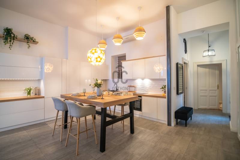 Európa egyik legszebb sugárútja, a kontinens első föld alatti vasútja, az Operaház, színházak, kávézók, luxusüzletek, múzeumok, bérpaloták,alig több, mint 150 éve épült az Andrássy út és ma már a Világörökségünk része.Itt épült a Mendl-bérpalota neoreneszánsz épülete is, csak egy sarokra az Operaháztól és az egykori Balettintézettől - ma már W Budapest luxushotel -,Az épület felújított, liftes, udvarán restaurált, korabeli kútszoborral.A lakás a II. emeleten van, nappalija az Andrássy útra néz,ízlésesen felújított, 136 m2,a tágas nappali - étkező - konyha a maga 65 m2 - vel központi része a lakásnak, családi-baráti-üzleti alkalmak méltó helyszíne,3 szobája jelenleg háló és dolgozóként használt.A lakás klimatizált, fűtése gáz cirkó.Akár a történelmi, pesti belváros prémium részén képzeli el otthonát, akár befektetésként vásárolna, ajánlom figyelmébe ezt a kivételes adottságú, Andrássy úti lakást.