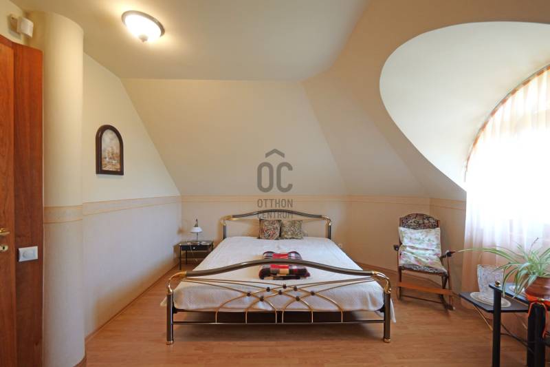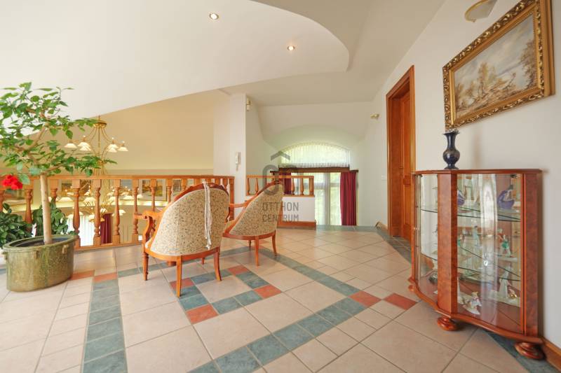 PANORÁMÁS CSALÁDI HÁZ ELADÓ PILISCSABA KLOTILDLIGETEN!Kivételes adottságok – Lenyűgöző kilátás – Kifinomult minőségEz a páratlan adottságú ingatlan a festői szépségű Piliscsaba Klotildliget egyik legszebb pontján, ahonnan lélegzetelállító panoráma tárul elénk a településre és a környező hegykoszorúra.Főbb jellemzők:Telek: 1 629 m², gondozott, parkosított kert, több száz dísznövénnyelLakóépület: 1991-ben épült, összesen 256 m² alapterületNapelem rendszerKiváló minőségű építőanyagok:Egyedi méretű, háromrétegű üvegezésű Hoffstadter fa nyílászárókIgényes belsőépítészeti megoldásokPinceszint / utcaszint:47,6 m²-es kétállásos garázsTágas előtérVendéglakrész: kiskonyhával és fürdőszobával20 m²-es raktár + 13,5 m²-es háztartási helyiség beépített szekrénnyelFöldszint:Itt helyezkedik el a szülői hálószoba, saját gardrób szobávalImpozáns, több mint 5 méteres belmagasságú nappali félköríves kialakítássalEgyedi tervezésű csillár és hangulatos kandallóGépesített, egyedi gyártású konyha és külön étkező, nyitható üvegfallalKözvetlen kijárat a panorámás teraszraTetőtér: Két hálószobaTágas galéria, kijárattal a másik teraszraLokáció:Piliscsaba Budapesttől mindössze 25 km-re találhatóKiváló közlekedés: autóval a 10-es főúton, illetve vasúti elérhetőség az Esztergom–Budapest vonalonCsendes, természetközeli környezet, mégis jól megközelíthető elhelyezkedésNe hagyja ki ezt az egyedülálló lehetőséget!Ideális választás mindazoknak, akik nyugalomra, térre és páratlan kilátásra vágynak – kompromisszumok nélkül.Ha szeretné megtekinteni vagy további információt kérne, keressen bizalommal!