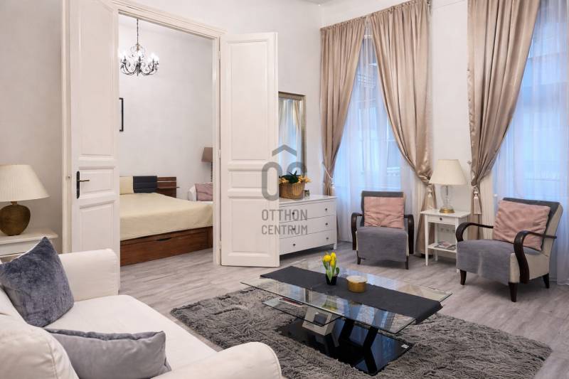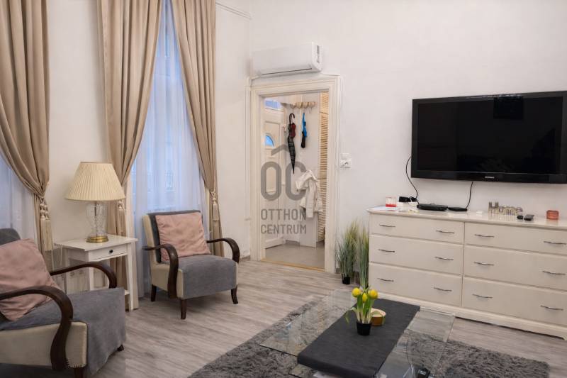 Kiadó igényes, tágas lakás az Oktogonnál!Budapest egyik legkedveltebb városrészében, az Oktogonnál kiadó egy világos, nagy terekkel rendelkező, teljesen bútorozott lakás. Az ingatlan egy felújított lépcsőházzal rendelkező társasház 3. emeletén található, rendezett, kultúrált lakóközösségben.A lakás azonnal költözhető, valóban csak egy bőrönd szükséges a beköltözéshez. Klímaberendezéssel felszerelt, csendes otthon, ahol a város zaja nem hallatszik be, ugyanakkor minden szolgáltatás karnyújtásnyira elérhető. A gang felől biztonsági rács védi az ingatlant, amely egy elkülönített, erkélyszerű rész használatát is lehetővé teszi.A tulajdonosok rugalmasak, 12 hónapnál rövidebb bérleti időszak is lehetséges.Kisállat, illetve nagyon kisgyermekkel történő költözés sajnos nem preferáltA közös költség 18.000 Ft/hó.A közlekedés kiváló: 1 perc sétára található a 4–6-os villamos, az M1-es metró, valamint több buszjárat, a közelben számos bevásárlási lehetőséggel.Ha egy igényes, azonnal költözhető belvárosi lakást keres, vegye fel velem a kapcsolatot, és tekintse meg személyesen ezt a kiváló adottságú ingatlant.