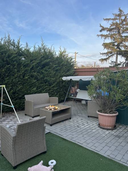 Szombathely, északnyugati részén, családiházas övezetben kínálunk egy modern, fiatalos kertesházat.Ausztriába ingázóknak ideális, hisz a határ csak 8km-re található és nem kell átvergődni a megyeszékhely forgatagán.A kertbe elektromos kapun keresztül jutunk, ahol 2 személyautónak fedett beálló lett kialakítva. A hangulatos kert meghitt intimszférát teremt, melynek része egy tároló is.Az ingatlan gázfűtés mellett rendelkezik még napkollektorral ( +puffertartály), valamint 3db modern klíma is lehetőséget biztosít a kellemes hőmérséklet elérésére.Az elmúlt évben a teljeskörű felújítás az épület szinte minden pontját érintette.A nyílászárókban lévő 3rétegű üvegezés nem csak a hőszigetelés de a hangszigetelés hatékony eleme.Az új konyhabútorban (fiókmegvilágítás, csillapított csukódás) egy korszerű víztisztító berendezés bújik meg.Tágas nappali mellett a világos, fűtött télikert növeli a teret. Nézzük címszavakban az épület főbb részeit:-Amerikai konyhás nappali-3 Szoba-2 Fürdő+Wc- Mosókonyha- Közlekedő- Dolgozószoba /Gardrób-Télikert-2 fedett gépjármű beálló- Kerti tárolóA képek magukért beszélnek. Ne habozzon, hívjon, ha kérdése merülne fel!