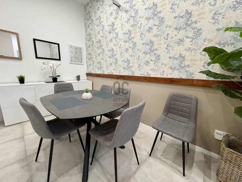 Első lakóját várja: PRÉMIUM, FELÚJÍTOTT 3 szobás 82m2-es siófoki sorház.1. INGATLAN HELYSZÍNE, LOKÁCIÓSiófokon a belváros szívében a Kálmán Imre sétányról nyíló kis utcában található.A Sió Plaza 1 perc távolságra, a híres Petőfi sétány és a Plázs 8-10 perces gyalogosan.Délkeleti tájolásának köszönhetően a reggeli–délelőtti fények beragyogják az otthont.Udvarra néző elhelyezkedése kellemesen intim, zajtól védett.Állandó otthonnak, nyaralónak vagy befektetésnek egyaránt kiváló választás.A mindennapi szolgáltatások, üzletek és közlekedési csomópontok gyalogosan is könnyen elérhetők.2. ÉPÜLET JELLEMZŐI KÍVÜLRŐL1980-ban épült sorházi egység, teljes körűen és igényesen felújítva 2025 novemberében készült el.10 cm homlokzati szigetelés gondoskodik a korszerű energetikáról.Két szint, gondozott homlokzat és rendezett közös terek jellemzik.A házhoz közös telekrész tartozik.9 nm-es fedett terasz bővíti a lakóteret, mellette zárt tároló áll rendelkezésre.Közös használatú pince és kert biztosít extra lehetőségeket.Parkolás közterületen, a közelben megoldható.3. AZ INGATLAN JELLEMZŐI BELÜLRŐL82 nm-es, kétszintes, 3 szobás elrendezés, teljesen felújítva – sosem használt állapot.Földszinten padlófűtés, emeleten radiátoros hőleadás mindez Ariston gázcirkóval.A konyhában Ariston vízmelegítő gondoskodik azonnali melegvízről, a földszi fürdőszobában külön bojlerrel kiegészítve.Beépített Whirlpool gépek: sütő, mikró, mosógép, mosogatógép és beépített hűtő.Paradox riasztórendszer emeli a biztonságot.Udvarra néző ablakok és a 9 nm-es fedett terasz kellemes, intim hangulatot adnak.A felújítás óta nem lakott, Ön lehet az első lakó.4. A KÖRNYÉK JELLEMZŐIA belvárosi elhelyezkedés miatt boltok, éttermek, bankok, gyógyszertárak és piac a közelben találhatók.A Balaton-part, a kikötő és a sétány könnyen megközelíthető.Iskola, óvoda és egészségügyi szolgáltatások elérhetők a környéken, családbarát környezet.Kiváló a közlekedés: vasútállomás és buszpályaudvar a közelben, gyors országos kapcsolatokkal.A környék rendezett, biztonságos és egész évben élhető, idényben pezsgő nyaralóhangulattal.