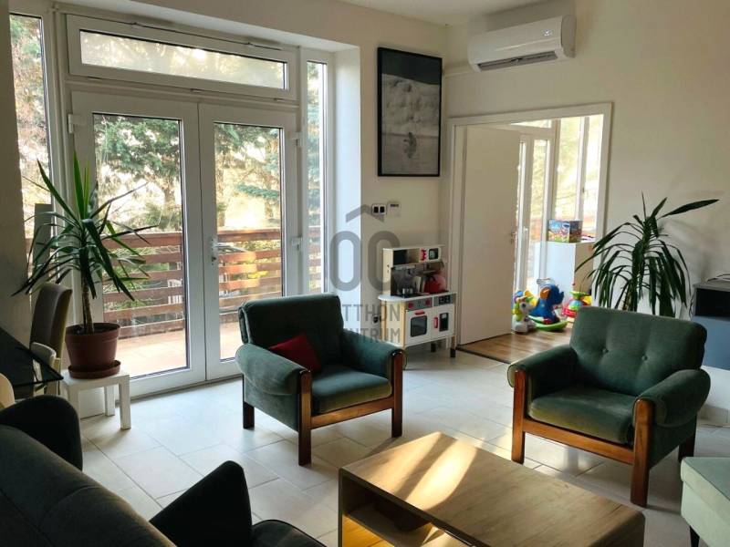 Képzeld el, hogy egy olyan otthonra találsz, ami nemcsak a családod igényeit elégíti ki, hanem a mindennapjaidat is szebbé varázsolja! Budapest 22. kerületében, Budatétényben egy igazán különleges lakás várja új tulajdonosát. Ez a 142 nm-es, hat szobás ingatlan tökéletes választás lehet családosok számára, akik a tágas életteret és a csendes, kertvárosi környezetet keresik. A lakásban egy tágas nappali fogad, amely ideális helyszíne lehet a családi összejöveteleknek. Az amerikai konyha modern és praktikus megoldásokat kínál, így a főzés nemcsak feladat, hanem élmény is. A nagy belmagasság és az egyedi tervezés lehetővé teszi, hogy a természetes fény áthatja az egész teret, így mindig világos és barátságos hangulatot teremt. A lakásban két fürdőszoba található, ami különösen előnyös lehet nagyobb családok számára. A 42 nm-es terasz pedig a nyári estéken kínál tökéletes helyszínt a pihenésre vagy baráti összejövetelekre. A környék csendes és biztonságos, ideális választás családok számára. A közlekedés kiváló, hiszen a közelben található buszmegállók és vasútállomás gyors és kényelmes eljutást biztosítanak Budapest belvárosába. Ezen kívül a környék számos zöld területtel büszkélkedhet, ahol a gyerekek szabadon játszhatnak, miközben te is élvezheted a hegyvidéki ingatlan nyújtotta előnyöket. A fűtésről az infrapanelek mellett hőszivattyú gondoskodik, ami nemcsak energiatakarékos, hanem környezetbarát megoldás is. A klíma pedig a nyári melegben biztosítja a kellemes hőmérsékletet a lakásban.A garázsban egy autó parkolása biztosított, így a parkolás soha nem jelent problémát. Ez az ingatlan nem csupán egy lakás, hanem egy otthon, ahol a család minden tagja megtalálhatja a számításait. Ha egy olyan helyet keresel, ahol a természet közelsége és a városi élet előnyei találkoznak, ne habozz!Kérlek, bátran keress meg bármilyen kérdéssel, szívesen segítek neked az ingatlan megtekintésében vagy bármilyen információval kapcsolatban!