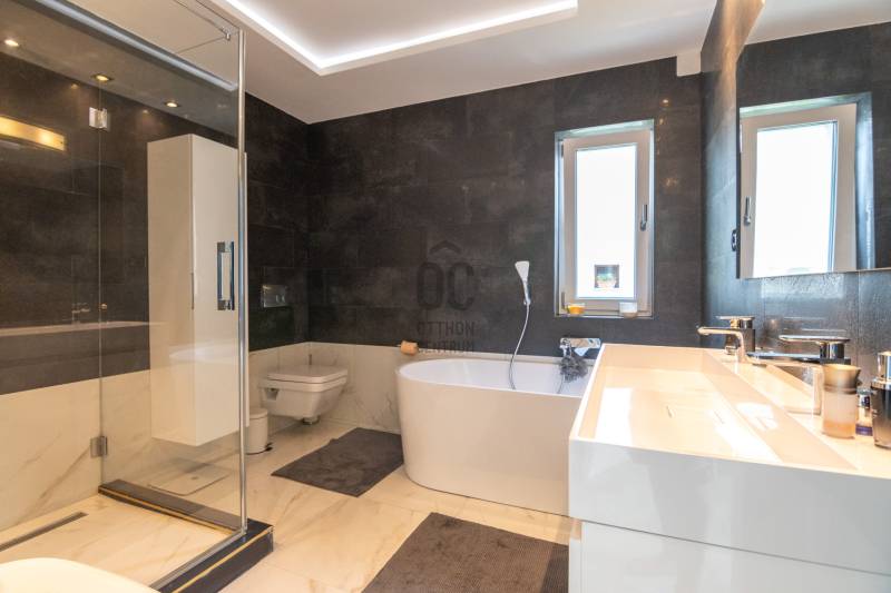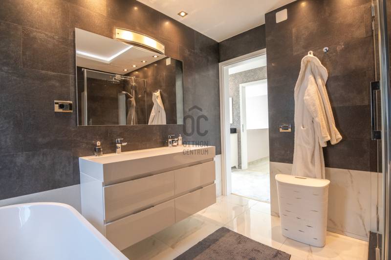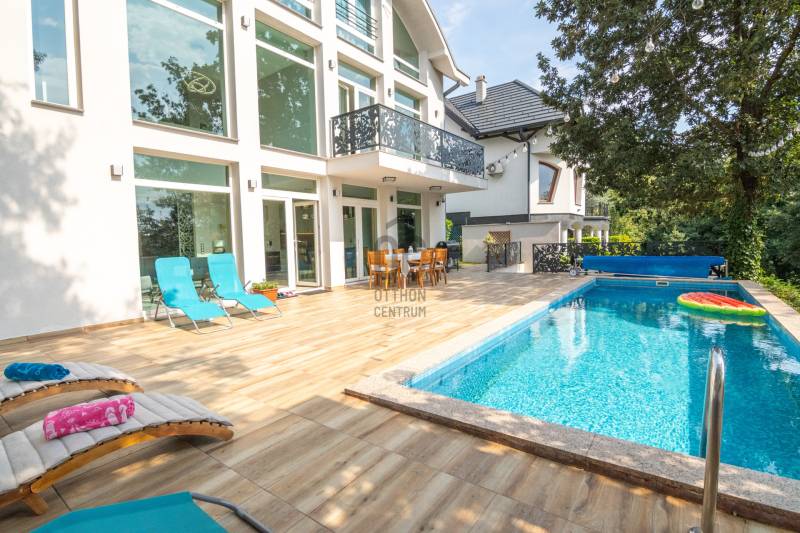 MIÉRT EZT VÁLASSZA?* Lélegzetelállító panoráma a környező tájra.* Hatalmas, 130 m²-es terasz- és erkélyegyüttes saját kültéri medencével.* Prémium minőségű, kompromisszumok nélküli építkezés.* Nagyvonalú terek: 220 m² nettó lakótér, kiváló elrendezéssel 4 szinten.* Ideális családoknak: Tágas közösségi terek és négy különnyíló hálószoba.* Zöldövezeti, presztízsértékű elhelyezkedés Diósdliget csendes részén.* 2 gépjármű számára kialakított beállási lehetőség a telken.* Praktikus tárolás és egyedi hangulat a saját borospincével.AZ INGATLANEz a Diósdligeten található, minden igényt kielégítő, 220 m² nettó (364 m² bruttó) lakóterületű családi ház a luxus és a kényelem tökéletes ötvözete. Az ingatlanhoz egy 300 m²-es, intim kert és egy összesen 130 m²-es terasz- és erkélyegyüttes tartozik, melynek központi eleme a saját medence.A ház négy szinten kínál átgondolt élettereket:* A földszint a társasági élet központja: itt található a 30 m²-es nappali, egy tágas, 30 m²-es konyha-étkező, valamint egy dolgozószoba. Innen nyílik a lenyűgöző, 126 m²-es panorámás terasz és a medencetér, amely tökéletes helyszíne családi és baráti összejöveteleknek.* Az első emeleten kapott helyet a főbejárat, egy tágas előszoba, valamint egy komplett szülői lakrész, mely saját hálószobából, gardróbból és fürdőszobából áll, teljes intimitást biztosítva.* A második emeleten további három, különnyíló hálószoba és egy fürdőszoba található, amely ideális a gyermekek vagy vendégek számára.* A szuterén szinten egy hangulatos borospince és a kazánház kapott helyet.A magas minőségű kivitelezés, a praktikus elrendezés és a páratlan panoráma teszi ezt az otthont igazán különlegessé.KÖRNYÉKDiósdliget a budapesti agglomeráció egyik legkeresettebb, legmagasabb presztízsű része. Csendes, biztonságos, zöldövezeti környezet jellemzi, kiváló levegővel. Az infrastruktúra fejlett, Budapest autóval és tömegközlekedéssel is könnyen és gyorsan elérhető. Ideális választás mindazoknak, akik a város közelségére és a természet nyugalmára egyaránt vágynak.MŰSZAKI ADATOK* Szerkezet: Magas minőségű építés, 15 cm-es külső hőszigeteléssel.* Nyílászárók: Modern, hőszigetelt műanyag ablakok és ajtók.* Fűtés: Gáz-cirkó, padlófűtéssel és radiátoros hőleadókkal kombinálva.* Hűtés: Kiépített klímarendszer.* Terasz és Erkély: Összesen 130 m².* Parkolás: 2 autó számára fedetlen gépkocsibeálló a telken belül.* Extrák: Kültéri medence, borospince.PARKOLÁS2 állásos fedetlen gépkocsi-beálló a saját telken belül.KIKNEK AJÁNLOTT?Tökéletes választás:* Nagyobb családoknak, akik tágas, jól szeparált, többgenerációs együttélésre is alkalmas élettereket keresnek.* Igényes vásárlóknak, akik egy reprezentatív, prémium minőségű és értékálló otthont szeretnének.* A szabadtéri élet kedvelőinek, akik kiélveznék a hatalmas, panorámás terasz és a saját medence nyújtotta lehetőségeket.Irányár: 279.000.000 Ft (kb. 711,000 EUR)Amennyiben az ingatlan felkeltette érdeklődését, keressen bizalommal, hogy további információkkal szolgálhassak és megszervezhessek egy személyes bemutatót.