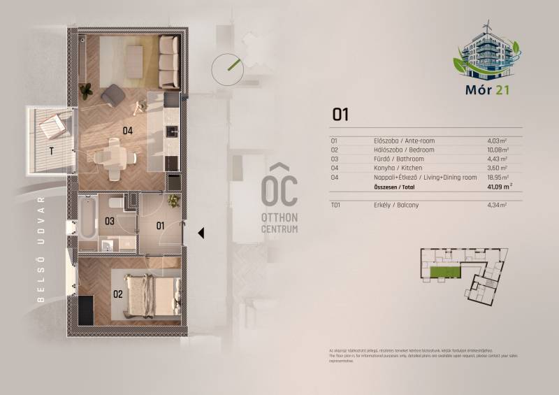 Projekt bemutatásaA Mór utca és Dévényi utca sarkán, egy hangulatos saroktelken épül fel ez a 23 lakásos, modern megjelenésű, mégis a környezetébe harmonikusan illeszkedő társasház. A kivitelezés során kiemelt figyelmet kapott a benapozás, a jól élhető terek kialakítása, valamint a magas műszaki tartalom.Az épület földszint + 5 emelet kialakítású, pinceszinttel, ahol teremgarázs és tárolók is helyet kaptak. Minden szinten ergonomikusan megtervezett, kiváló elosztású lakások találhatók, jellemzően 42–90 m² közötti alapterülettel. A legtöbb lakáshoz saját loggia, erkély vagy terasz tartozik – a felső szinten exkluzív nagy teraszos lakások kerültek kialakításra.A társasház minden szempontból megfelel a mai kor elvárásainak:– 23 parkolóhely (12 a pinceszinten, 11 a földszinten), Elektromos autó töltési lehetőséggel– 6 tároló,– zöldtető és közösségi tetőkert,– geotermikus hőszivattyús fűtés és hűtés,– padlófűtés, fan-coil hűtés,– háromrétegű nyílászárók, korszerű hő- és hangszigetelés,– liftes megközelítés minden szinten.Az épület anyaghasználata prémium minőségű: terrakotta árnyalatú burkolólapok, világosszürke betonhatású elemek és szignálfehér falfelületek teszik igazán különlegessé a házat.A kiváló infrastruktúrájú környék – Jász utca, Lehel út, Róbert Károly körút, M3-as közelsége – garantálja a gyors közlekedést, míg a környező parkok, új fejlesztések és szolgáltatások emelik a lakók életminőségét.Ez a projekt ideális választás lehet városi otthont keresőknek, tudatos befektetőknek és azoknak, akik értékelik a magas minőséget és az élhető, modern lakókörnyezetet.