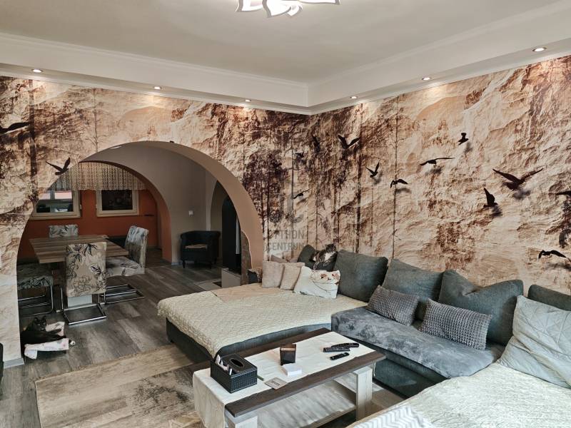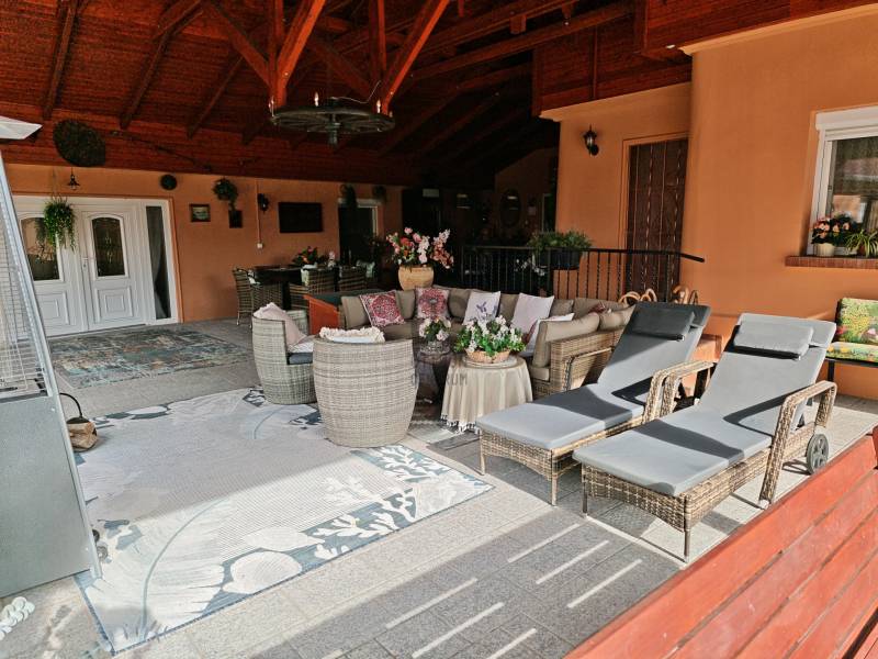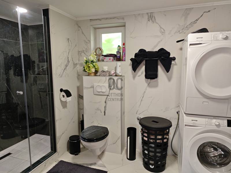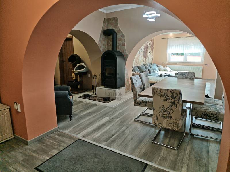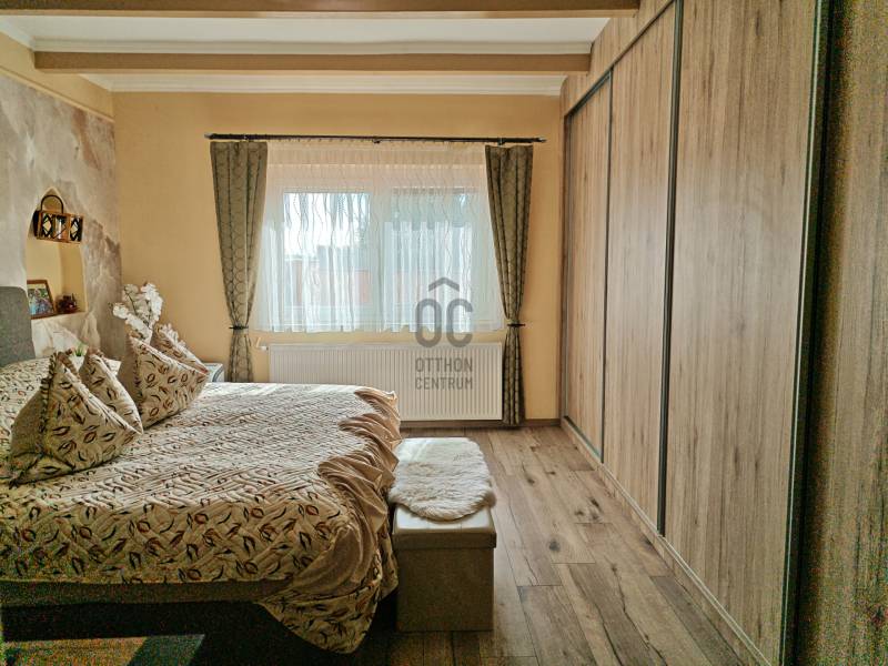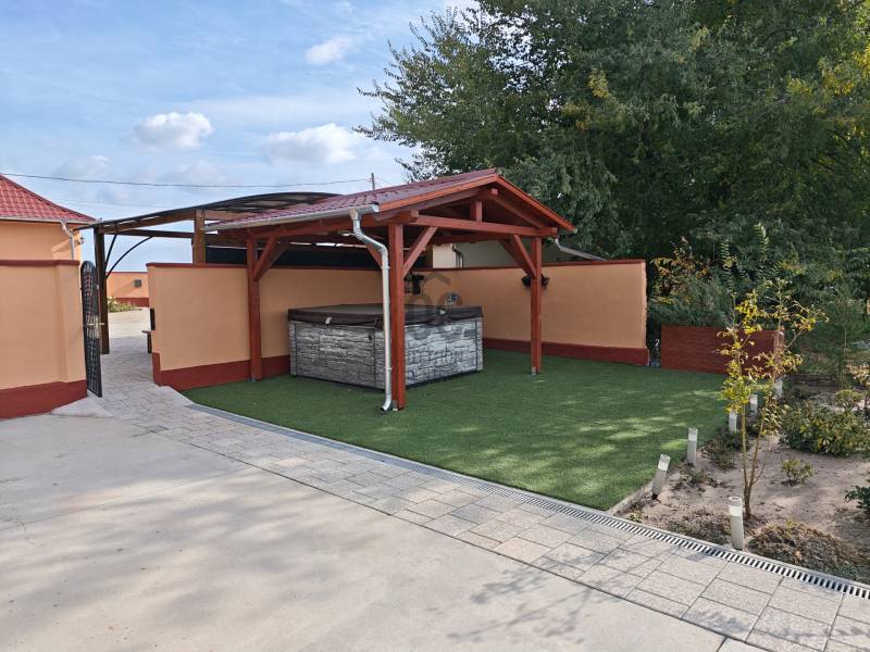 Tabdi külterületén, csendes, nyugodt környezetben kínálok eladásra egy igényesen felújított, kétgenerációs lakóingatlant.Az ingatlan kifüggesztéses értékesítés keretében vásárolható meg, amely biztosítja az átlátható és szabályos értékesítési folyamatot.Az ingatlan két, külön bejáratú lakóegységgel rendelkezik, így kiváló lehetőség két generáció együttélésére, illetve vendégház vagy bérbeadás céljára is.A telek mérete 7750 m², a teljes beépített lakóterület 162 m².Főépület – 90 m²A főépület teljeskörű felújításon esett át: megújult a tetőszerkezet, a víz- és villamoshálózat, valamint hőszigetelt nyílászárók kerültek beépítésre rovarhálóval és alumínium redőnnyel.A fűtést kombi gázkazán és hűtő-fűtő klímák biztosítják.A belső tér igényes, beépített gardróbokat és Gorenje gépesített konyhát tartalmaz.Vendégrész – 72 m²A második, önálló bejáratú lakóegység szintén teljeskörűen felújított, minden szükséges közművel ellátott.Ideális vendégházként, irodahelyiségként vagy akár bérbeadásra is.Kültéri felszereltségA lakóingatlanhoz egy több mint 70 m²-es fedett, térkövezett terasz tartozik tömör fa szerkezettel, amely kiválóan alkalmas pihenésre és közösségi térként is funkcionál.A telken 36 m²-es dupla garázs, külön grillterasz, jacuzzi, elektromos kapu és ipari áram található.A vízellátást 60 méter mély fúrt kút és víztisztító berendezés biztosítja.ÖsszegzésA kifüggesztéses értékesítés keretében megvásárolható ingatlan azonnal költözhető, kiváló műszaki és esztétikai állapotban van.A tágas telek, a két külön lakóegység és a magas szintű felszereltség együttesen teszik ideális választássá mind állandó lakhatás, mind befektetési cél esetén.Amennyiben felkeltette érdeklődését, kérem, vegye fel velem a kapcsolatot a megtekintés egyeztetéséhez.Bács-kiskun, Tabdi, tanya, kétgenerációs, gáz-cirkó, felújított tanya,