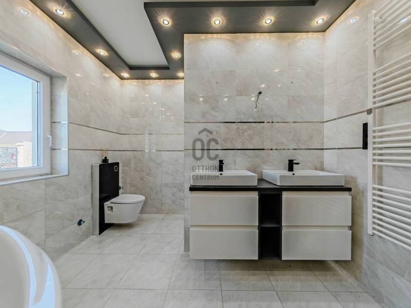 Fedezd fel ezt a gyönyörű, modern házat Ráckevén, amely tökéletes választás családok számára! Ebben a kifogástalan állapotú önálló családi házban, egyedi tervezésének köszönhetően a minimalista kialakítás és a prémium kivitelezés találkozik. A bruttó 157 nm-es (nettó 137 nm) ház három hálószobával, egy Wc-s fürdőszobával és egy külön Wc-vel rendelkezik, így bőven van hely a család minden tagjának. A ház belső tereit LED hangulatvilágítás díszíti, ami különleges atmoszférát teremt, miközben a 77 nm-es amerikai konyhás nappali a középpontja a családi együttléteknek. A környéken egyedülálló 807 nm-es telek rendezett kerttel büszkélkedhet, ahol a gyerekek szabadon játszhatnak, és a felnőttek is élvezhetik a friss levegőt. 48 nm-es fedett terasz tökéletes a szabadtéri kikapcsolódásra, melyre a nappaliból, ill., a főhálóból is a közvetlen kijutás biztosított. A kerti tároló praktikus megoldást kínál a kerti eszközök és egyéb holmik tárolására. A dupla garázsba két autó és az udvaron még több kocsival lehet beállni. A ház hőszivattyús fűtése (padlófűtéssel) és hűtő-fűtő klíma biztosítja a kellemes hőmérsékletet az év minden szakában, így a komfortérzeted mindig garantált. Műszaki adatokkal, kérdésekkel kapcsolatban kérem keress és minden kérdésre válaszolni fogok!A környék csendes és biztonságos, ideális helyszín a családosok számára. Ráckeve felkapott terület, ahol a közlekedési lehetőségek is kiválóak: az autóval gyorsan elérheted a közeli városokat, míg a tömegközlekedés is könnyen hozzáférhető. A környék szépsége és nyugalma, valamint a közeli szolgáltatások teszik ezt a helyet igazán vonzóvá. Ez a tehermentes ingatlan nemcsak egy új otthon, hanem egy életstílus is, amelyben a modern élet minden kényelmét élvezheted. Ha kérdéseid vannak, vagy szeretnéd megtekinteni ezt az exkluzív házat, ne habozz kapcsolatba lépni velem! Az ingatlan piaca folyamatosan változik, érdemes mihamarabb lépni, hogy ne maradj le erről a páratlan lehetőségről. Az otthonod vár rád, és én itt vagyok, hogy segítsek megtalálni a legjobbat számodra!Tulajdonosnak nyitottsága van beszámolni használt ingatlanodat, ha a vásárláshoz ez szükséges lenne, emiatt vedd fel velem a kapcsolatot!