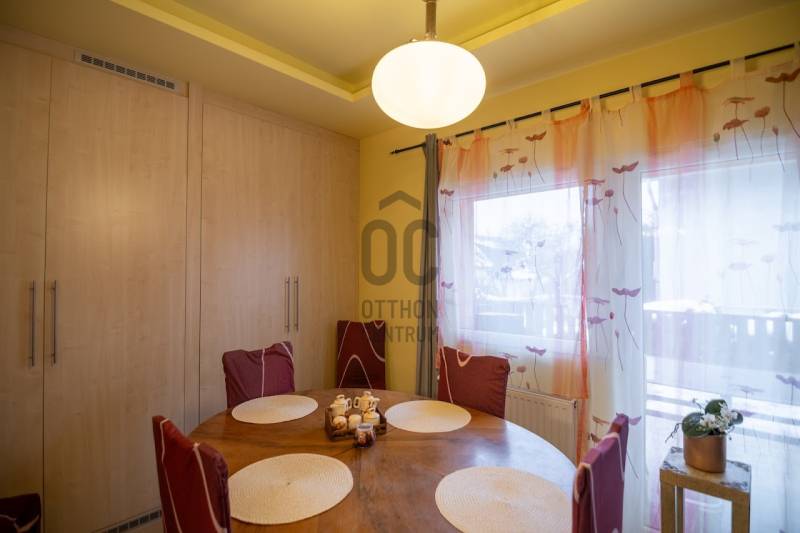 22. kerületben, Budafokon a Háros utca - Gádor utca környékén, zöldövezetben, csendes kertvárosi mellékutcában eladó egy 180 m2-es nettó lakótérrel rendelkező, 2 generációs, összesen 7 lakószobás ház, teraszokkal, pincével, fedett felszíni autóbeállókkal, 544 m2-es önálló telken. A ház 2 önálló lakással rendelkezik (60m2 és 120 m2), de a lakások akár össze is nyithatóak. Mindkét lakásnak önálló bejárata van, a kertrészek is teljesen szeparálhatóak. A kisebb lakás (2 szobás) teljesen felújított, korszerűsített, modern hatású. A nagyobb lakás (nappali + 5 hálószobás) is folyamatosan karbantartott, a burkolatok jó állapotúak, a vizes helyiségekben újszerűek – ez a lakás egyedi igény szerinti kisebb esztétikai felújítás után azonnal költözhető. A nyílászárók korszerű műanyag ablakok.A lakásokban a villany- és a víz fogyasztás külön mérhető, a fűtésköltség a két lakóegység miatt dupla rezsicsökkentéssel fizethető. A fűtés fali gázkazánnal történik. Nappali és éjszakai áram is rendelkezésre áll. A pince kb. 20 m2-es. A lakások kényelmes méretű teraszokkal rendelkeznek, amelyek tavasztól őszig remekül használhatóak. A ház mellett 2 autó számára fedett kocsibeálló áll, de az utcán is kényelmesen meg lehet állni autóval. Az udvarra elektromos működtetésű nagykapun és személybejárón is bejuthatunk.A ház:- 2 szintes, 2 generációs nyeregtetős épület- homlokzati hőszigetelés- lakásonként mérhető víz- és áram fogyasztás - korszerű műanyag ablakok- biztonsági bejárati ajtók- fedett autóbeállók, elektromos kapu- pinceElrendezés:1. Lakás: - földszintes- 2 szoba, terasz, kertkapcsolat- konyha- fürdőszoba, külön wc- előszoba.2. lakás:- 2 szintes- nappali és 5 hálószoba, terasz, kertkapcsolat- étkező,- konyha- 2 fürdőszoba, külön wc- közlekedők- lépcsőtér.A kert parkosított; kisgyerekes családnak is kitűnő választás: a közelben bölcsőde, óvoda, iskola; a játszótér sétatávolságra van. A tömegközlekedés kiváló, autóbusz megállók közel találhatóak. A környék kertvárosi hangulatot tükröz, jó választás, ha Ön családjával Budafokon szeretne élni.A megtekintés miatt keressen bizalommal. Kizárólagos megbízás, vadonatúj ajánlat!