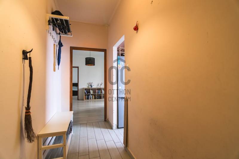 XIV ker. Istvánmező városrészben eladó- 57 négyzetméteres, - 2 szobás lakás ( egybe nyíló ) ,- 5.emeleti,- liftes,- utcai nézetű,- városi panorámás,- világos,- felújított,- erkélyes ( 3 x 1,24 nm ),- 2,8 m belmagassága,- házközponti fűtéses,- légkondicionált,- tető felújított,a közelmúltban felújított: - műanyag nyílászárók, - bejárati ajtó, - fürdőszoba, konyha, Közös költség: - fűtés + meleg víz ( 22 000 Ft /hó )- villany ( 4000 Ft /hó )- gáz ( 1500 Ft /hó )- kitűnő közlekedési lehetőségek,A ház udvarában gépkocsi beálló igényelhető.