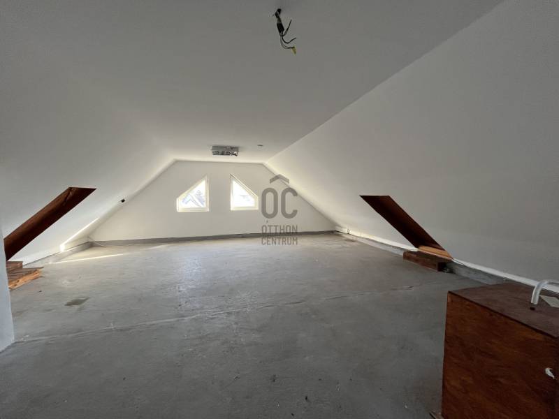 Debrecen Létai útból nyíló csendes zsákutcában, ELADÓ egy két ütemben épült, br. 165 m2-es, földszint + tetőtér beépítésű, önálló telken épült családi ház!Az ingatlan átlagos illetve felújítandó állapotú, 768 m2-es saroktelken helyezkedik el, teljes közművel rendelkezik.Az eredeti ház 1995 körül épült, téglából, beton alappal, majd a 2000 es évek elején építettek hozzá, illetve tetőteret építettek rá.Ekkor kapott új tetőt cserépfedéssel, új réz villanyvezetékeket.Műanyag nyílászárók, gázcirkófűtés, illetve külön feljárat lett az emeletre kiépítve, ennek köszönhetően akár kétgenerációs ingatlannak is alkalmas lehet. A tetőtér a képeken látható állapotban, elválasztó falak nélkül, (40 m2 egy légtér), várja az új tulajdonost, akinek a fantáziájára van bízva mit alakít ki belőle.Statikailag rendkívül jó állapotú az ingatlan, a földszinten kettő nagyszoba, egy nappali ,félszoba, illetve nagy konyha- étkező található.Könnyűszerkezetes garázs található még a házhoz építve, mely 21 nm. A telek hátsó részén tárolók, pince találhatók, az ingatlan körbe kerített.Amennyiben szeretné megtekinteni az ingatlant, vagy további kérdése van, állok rendelkezésére, akár hétvégén is!