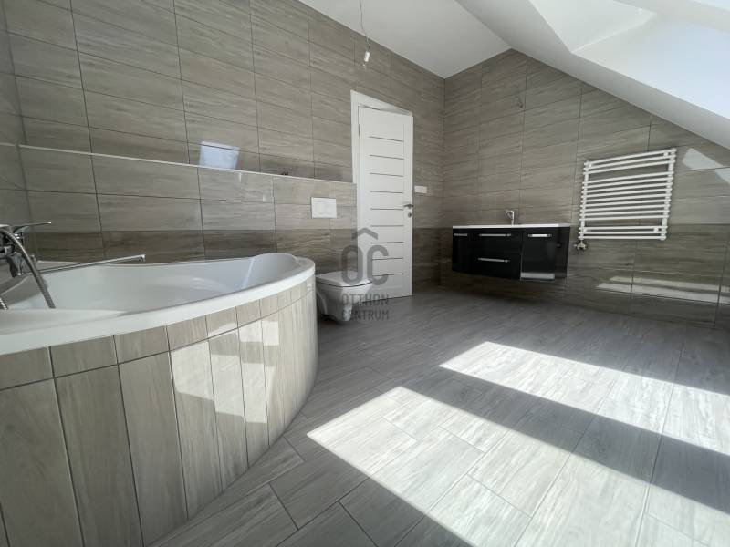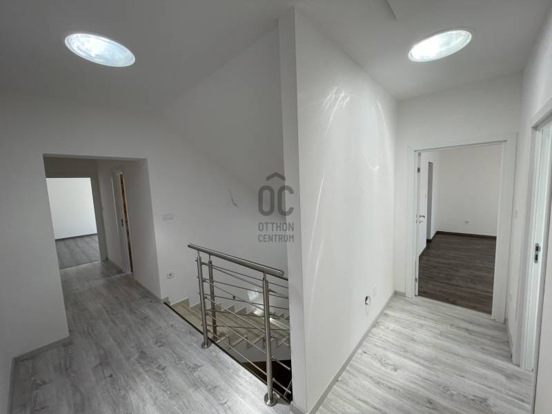 Debrecen frekventált övezetében, Nagyerdei környezetben várja új tulajdonosát ez a 2024-es, új építésű, nettó 187 m2-es, hatalmas, nagy belmagassággal rendelkező nappali+ 2 hálószobás magas műszaki tartalommal megépített, energia takarékos lakóingatlan, mely használatbavételi engedéllyel rendelkezik.Az ingatlan zártsorú beépítéssel, 349 m2-es telken épült, A + energia besorolású, földszint + emelet kivitelű.Minimális fenntartási költsége többek között a H tarifára csatlakoztatott Daikin hőszivattyúnak köszönhető, mely biztosítja az ingatlan hűtését és fűtését, padló, fal, mennyezet megoldással, továbbá szigetelt falainak és felső kategóriás külső nyílászáróinak, mely háromrétegű edzett üvegezéssel, rovarhálóval, részben távirányítható rolóval ellátott. Az ingatlan 10 kW-os napelem rendszer fogadására előkészített.Földszint helyiségei: nagyméretű nappali- étkező- konyha+ kamra, melynél a nappali igény szerint galériázható a nagy belmagasságnak köszönhetően, a nappaliból megközelíthető a polikarbonáttal fedett terasz, továbbá épített zuhanyzós fürdőszoba mellékhelyiséggel, MOFÉM csaptelepekkel.Emelet helyiségei: 2 hálószoba+ 1 gardrób, sarokkádas fürdőszoba WC- vel, gépészetnek kialakított helyiség mosókonyhával.Az ingatlanhoz tartozik egy 20 m2- es gépkocsibeálló HÖRMANN távirányítható szekcionált kapuval ellátva, elektromos autó töltésére alkalmas előkészítéssel, az udvaron több autó számára parkolási lehetőséggel, valamint az udvarról megközelíthető, pince szinten lévő tároló is.Azonnal birtokba vehető!További kérdéssel kapcsolatban keressen bizalommal!