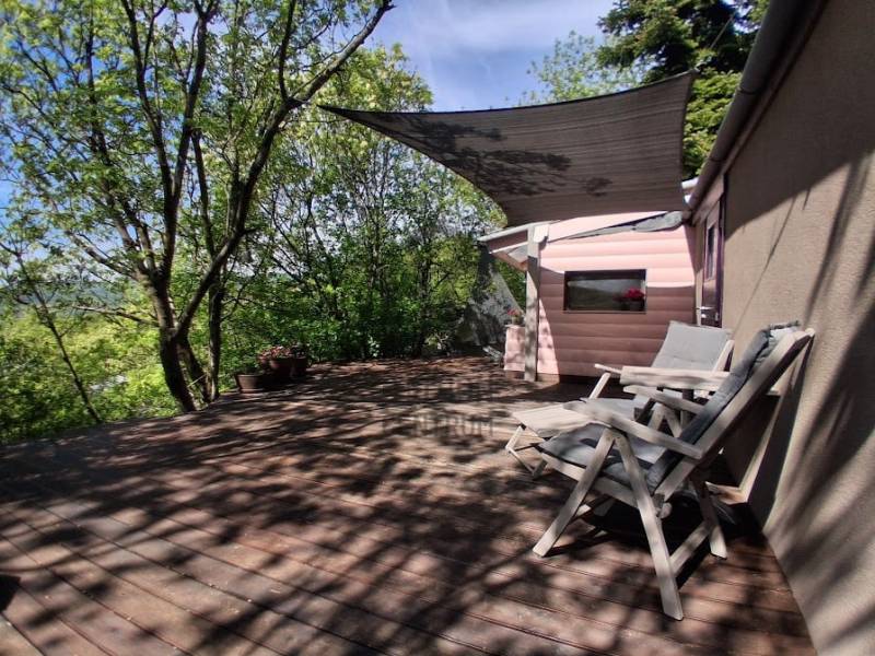 Természetközeli miliő, stílusos belső, fenntartható életvitel...!Lombteraszos, nyáron hűs, panorámás tiny houseA kert fele erdőkert jellegű, nagy fenyőfák és kőrisligetekkel, a másik fele mezei virágos, kellemes, tervezhető kert és annak gazdag zöld növényzete, színes virágai, az ősfákkal körbe ölelt terasz...a káprázatos panoráma!Szentendrén, a Szarvashegy legfelső utcájában, Natura 2000 által határolt utcában, erdei környezetben 39 nm-es tiny house eladó.Ideális állandó lakhatásra, nyaralónak vagy vendégháznak!Jó lehetőség befektetés jelleggel, erdei nyugodt lakóhely pároknak, kis komfortnöveléssel lombteraszos apartman kiadásra.A 950 m2-es teraszos kialakítású, körbekerített telek üdülőövezetben (10% a beépíthetőség) van, a tulajdoni lap szerint belterületi, gazdasági épület és udvar megnevezésű ingatlan.A telken vezetékes víz, villany áll rendelkezésre (3x25A), gáz, csatorna jelenleg nincs, biológiai szennyvíztisztító van. A csatorna rákötése és az utca aszfaltozása a közeljövőben várható. A fűtésről Nobo panel, a meleg vízről villanybojler gondoskodik.Az épület hagyományos építési móddal, beton sávalappal, fából épült, a falak és a tető 4 éve 15 cm kőzetgyapot szigetelést kapott és hozzáépítésre került egy szigetelt Avondale Leda típusú (forgalomból kivont) luxus lakóautó, polikarbonát tetővel, amiben a konyha - étkező és a fürdőszoba található.A 45 m2-es vörösfenyő terasz alatt található 3 db lapra szerelhető konténer: 18 m2 tároló.A ház rendkívül csendes utcában van, ahol az ide érkezők élvezhetik az utca másik oldalán kezdődő Duna–Ipoly Nemzeti Park erdeiben lévő túraútvonalak adta lehetőségeket vagy akár egész nap az ágyban bekuckózva, egy teljes falnyi üvegfelületen keresztül élvezhetik a kilátást, ami tulajdonképpen már maga az erdő...Mindezt egy letisztult, természetes, részben fával burkolt, modern, skandináv stílusban épült mini házban, a központtól néhány percre.A telek felső részén egy meditációs tájpad van elhelyezve, az utca legmagasabb fenyőfája alatt, az alsó sík része akár medence elhelyezésére vagy szabadidős sportolásra is alkalmas.A nagy kertnek köszönhetően itt kedvedre kialakíthatsz dézsát, jakuzzit, sütögetőt, kirakhatsz kanapékat és élvezheted a nagybetűs életet...!Tudatunknak minden nap szüksége van arra, hogy kicsit kikapcsoljon...éppen ezért az alapoktól a spiritualitásnak lett szentelve, itt a keleti kultúrák jegyei találhatóak meg...lehetőségünk van lelassítani, lenyugodni...!Éljétek meg Ti is, irány Szentendre!eladó#nyaraló#Szentendre#Szarvashegy#tiny_house#panoráma#relax#