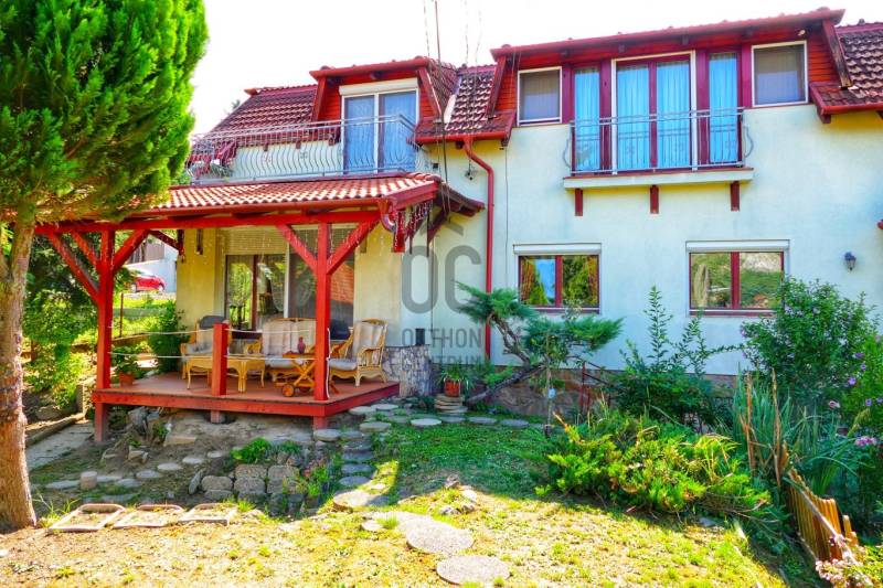 CSOBÁNKA szívében csendes utcában, panorámás kétgenerációs CSALÁDI HÁZ eladó!TELEK:- 721 nm -Keleti fekvésű -zsákutcában-panorámás- rendezett, ápolt -teraszos kialakítású-teraszok terméskövekkel tagolt, sziklakerti növényekkel díszített részekből áll.- körbe kerített- elektromos kapubeállás- díszkő burkolat a kaputól a ház bejáratáig- nyitott beálló - A telek adottságához igazodva, a kert első részében helyezkedik el.- jól szigetelt - téglából épült- a mennyezet felett ( föld) zöld tető,CSALÁDI HÁZ: - két generáció együtt élésére kiválóan alkalmas-külön bejáratú két tágas lakás- összközműves- mind a két lakás külön mérőórákkal rendelkezik-Az első házrész 1995-ben épült, a második házrész 2005-ben-együtt lett szigetelve a ház és színezve- a teljes tetőszerkezet 2005 -ben együtt épült.-cserép tető- klíma kiállás kiépítve1 LAKÁS:- 1995-ben épült - 93,4 nm- tégla építésű- a lakás alatt egy garázs lett építve, mely egy nagy vagy két kisebb autó tárolására alkalmas- a lakásba lépcsőn keresztül jutunk fel- bejárat előtt egy fedett terasz - tágas amerikai konyhás nappali- két nagy méretű keleti fekvésű szoba- kisebb lakószoba- 2 db fürdőszoba WC-vel- és egy háztartási helység lett kialakítva- fa nyílászárók - fűtés gázcirkóval, vagy vegyes tüzelésű kazánnal lehetséges2. lakás- 2005-ben épült- mediterrán jellegű, - 154,3 nm- tégla építésű- szigetelt- egyedi fa nyílászárók, dupla üveggel- belső kétszintes- keleti fekvésű- otthonos- tágas terek jellemzik a lakóteret- belmagassága 270 cm szinte minden helyiségben, a nappaliban 4 méteres belmagasság- fürdőszobákban dupla épített mosdó, sarokkád,- nappaliban kandalló- gázcirkó fűtés- nappaliból és a konyhából csodálatos kilátás Csobánkára és a hegyekre.A lakások külön- külön is eladóak, ügyvédi megosztással.Mind a két lakáshoz, garázs, önálló telek rész is tartozikIskola, óvoda, sportpálya, bevásárlási lehetőség , tömegközlekedés séta távolságban.