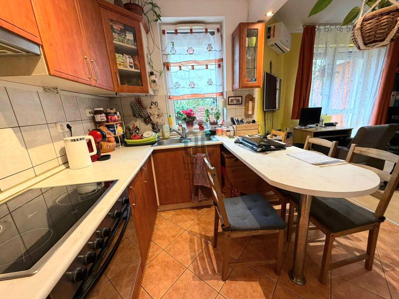 Eladásra kínálok egy minden igényt kielégítő, földszinti, 60 m²-es, kertkapcsolatos rezidenciát Rákoshegy legkedveltebb részén, a Helikopter lakópark egyik csendes, átmenő forgalomtól mentes mellékutcájában. Ez az ingatlan tökéletes ötvözete a társasházi kényelemnek és a privát kertes ház élményének.Miért ez az ingatlan a legjobb választás a környéken?Privát szféra és nyugalom: A mindössze 6 lakásos, rendezett lakóközösségű társasház legbelső lakása, így a zavartalan csend garantált.Saját oázis: A lakáshoz egy 22 m²-es, részben fedett, árnyékolóval felszerelt terasz és egy 35 m²-es, kizárólagos használatú hátsókert tartozik. Ideális helyszín reggeli kávézáshoz, esti borozáshoz vagy családi sütögetéshez.Benapozott terek: A Dél-Keleti fekvésnek köszönhetően a lakás egész nap fényárban úszik, ami pozitív hatással van az életminőségre és a rezsiköltségekre is.Műszaki tartalom és felszereltség (Ami az értéket növeli):Korszerű gépészet: Kombi cirkó fűtés egyedi mérőórákkal – csak azt fizeti, amit elfogyaszt!Komfort extra: Frissen felszerelt hűtő-fűtő klíma gondoskodik a tökéletes hőmérsékletről minden évszakban.Minőségi nyílászárók: 5 kamrás, UV-stabil műanyag ablakok redőnnyel és szúnyoghálóval a maximális hang- és hőszigetelésért.Biztonságos parkolás: A vételár részét képezi a telken belüli, frissen térkövezett felszíni beálló, mely távirányítós kapun keresztül érhető el.Praktikum és design:A belső elosztás kiváló: tágas amerikai konyhás nappali, két külön nyíló hálószoba és egy kényelmes, sarokkádas fürdőszoba alkotja az otthon egységét. Az ingatlan vételára tartalmazza:A beépített gépekkel felszerelt modern konyhabútort.Az egyedi világítással ellátott, tágas gardróbszekrényt.A teraszon elhelyezett praktikus szerszámos szekrényt.Lokáció – Minden egy karnyújtásnyira:A lakópark infrastruktúrája egyedülálló: óvoda, üzletek, cukrászda és játszótér sétatávolságra. A természet szerelmeseinek a Keresztúri parkerdő (5 perc séta) kínál futópályát, tanösvényt és kikapcsolódási lehetőséget. Közlekedés: Kiváló összeköttetés az Örs vezér tere és Rákoskeresztúr központja felé (buszmegálló 2 percre).Az ingatlan per- és tehermentes, azonnal gördülékenyen megvásárolható.Ez a lakás nem csupán egy ingatlan, hanem egy életforma. Olyan igényes új tulajdonost keresünk, aki értékeli a minőséget és a nyugalmat.Ne maradjon le erről a ritka lehetőségről! Várom megtisztelő hívását a hét bármely napján!
