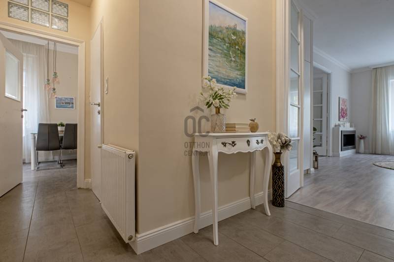 Amennyiben olyan otthont keres, ahol a csend és az elegancia találkozik a pezsgő városi élettel, akkor ez a lakás Önre vár. A II. kerület egyik nyugodt mellékutcájában, mégis kivételesen központi elhelyezkedéssel kínálunk megvételre ezt a teljes körűen felújított, azonnal költözhető, stílusos lakást.A Mammut Bevásárlóközpont, a Millenáris park és a Marczibányi tér mindössze 5 perc sétára található, így üzletek, éttermek, kávézók és kulturális programok karnyújtásnyira vannak – autó nélkül is. A közlekedés kiváló, parkolás a ház előtt, az utcán megoldott, vagy a Millenáris park alatti mélygarázsban is lehetséges.A karbantartott, patinás társasház magasföldszintjén elhelyezkedő lakás tágas terekkel és kellemes arányokkal rendelkezik. Ablakai csendes mellékutcára néznek, így a városi nyüzsgés teljesen kizárható. A lakás saját fűtésrendszerrel, valamint egyedi mérésű közművekkel felszerelt, a közös költség mindössze 19.400 Ft.Az igényesen megtervezett belső tér két fürdőszobát kínál, ami ritka kényelmet biztosít. A nappali meghitt hangulatát egy bioetanol kandalló emeli, míg az elektromos redőnyök a nappaliban és a hálószobában tovább fokozzák a komfortérzetet.A praktikumról sem kell lemondani:•beépített szekrények segítik az átlátható tárolást,•külön pincetároló áll rendelkezésre.Ez a lakás ideális választás igényes pároknak, akik értékelik a minőséget, a nyugalmat és a belvárosi életstílust – kompromisszumok nélkül.