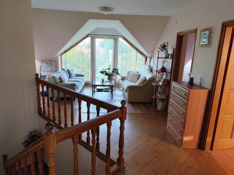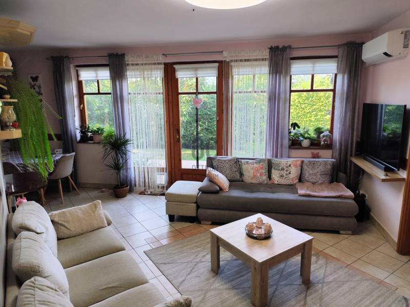 A Balaton déli partján elhelyezkedő, Balatonlelle város központjában, de mégis csendes, nyugodt környezetben eladó egy 2004-ben épült, sorház jellegű házban található kétszintes lakóház.A földszinten autógarázs, mellette a főbejárat.A lakásba belépve jobbra egy WC-mosdó, mellette egy légtérben találjuk a nappali-konyha-étkező helyiséget, ahonnan közvetlen kiléphetünk a teraszra.A terasz egy sövénnyel körülvett, csendes belső kerttel együtt kiegészülve a relaxáció, a pihenés szigete.A nappaliban egy hangulatos kandalló van, onnan nyílik a fürdőszoba, ahol a korszerű gázkazán is található.Az előtérből juthatunk a tetőtérbe, ahol nappali, mellette gyereksarok, 2 hálószoba, zuhanyzó, külön WC és 2 erkély található.Ugyancsak az előtérből érhető el a 26.5 nm alapterületű pince helyiség.A lakás környéke rendezett, autóparkolásra a lakás előtt kialakított, közforgalomtól elzárt területen van lehetőség.Balatonlellén a homokos fövenyes strand, élményfürdő, szabad strand, hajóállomás 10 perc sétával érhető el.A strandon szórakozást, vendéglátást szolgáló létesítmények találhatók. Nyáron a fesztivál parkban színes szórakozás várja a vendégeket és az itt lakókat. Vasútállomás, autóbusz állomás, boltok, iskola, óvoda, bölcsőde a közelben van.Amennyiben felkeltettem érdeklődését, kérem hívjon bizalommal!