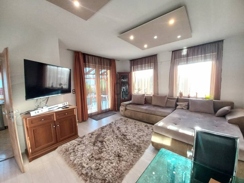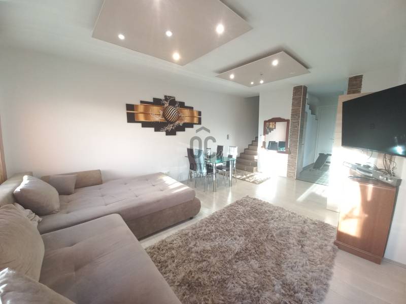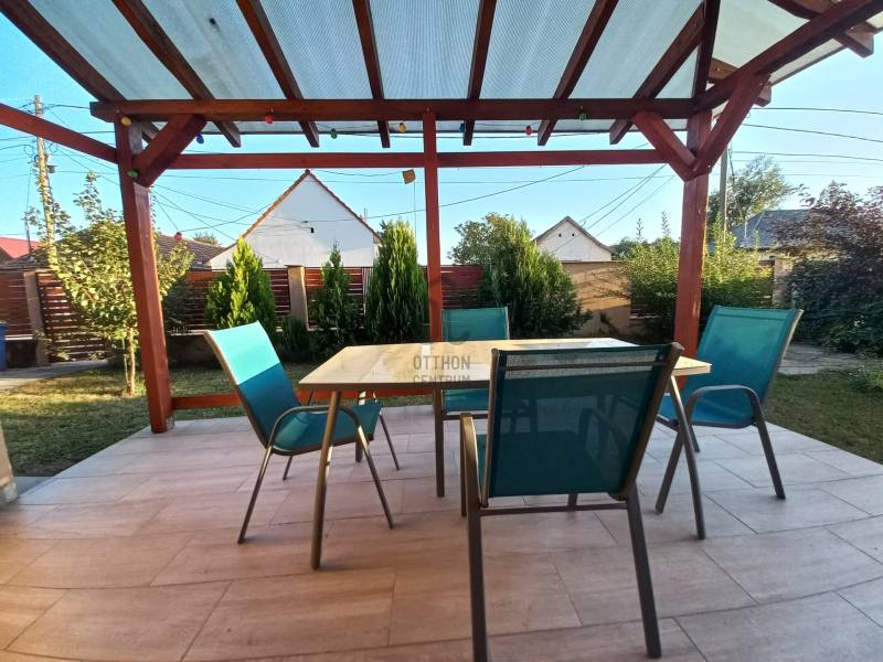 Debrecen Hatvan utcai kerti részén, gyönyörű, modern környezetben, nappali+ 3 hálószobás ikerház, gondozott kerttel eladó!Kiváló lokáció, kedvelt, sokak által előnyben részesített környezet.A belváros közelsége, illetve a nyugati városrész bevásárló üzleteinek rövid megközelíthetősége, és az autópálya gyors elérése is hatalmas előnyökkel jár az itt lakók számára.Aszfaltozott, átmenő forgalomtól mentes utcában található.Paraméterek:- 2017-ben téglából épült, szigetelt, garázzsal kapcsolatos, ikerház.- 125 nm alapterületű kétszintes, mediterrán jellegű épület- 16 nm-s garázs, elektromos kapuval ellátva- a földszinten: nappali - étkező, konyha, lépcső alatti tároló, és fördőszoba zuhanyzóval és WC- vel.- emeleti részén: 3 hálószoba, 1 fürdőszoba, 1 háztartási helyiség került kialakításra- műanyag, hőszigetelt nyílászárók- kondenzációs gáz cirkó kazán biztosítja a fűtést és a melegvíz ellátást.- padlófűtés a földszinten, radiátoros hőleadók az emeleti helyiségekben - a nappali közvetlen kapcsolatos a kellemes déli tájolású fedett terasszal- cc 150 nm -s parkosított, körbekerített kertben pihenheti ki a hétköznapok fáradalmaitTiszta tulajdoni viszonyok, hamar birtokba vehető otthon.Hívjon bizalommal, és nézze meg személyesen! Debrecen, Hatvan utca, kert, eladó, ház, iker, garázs,