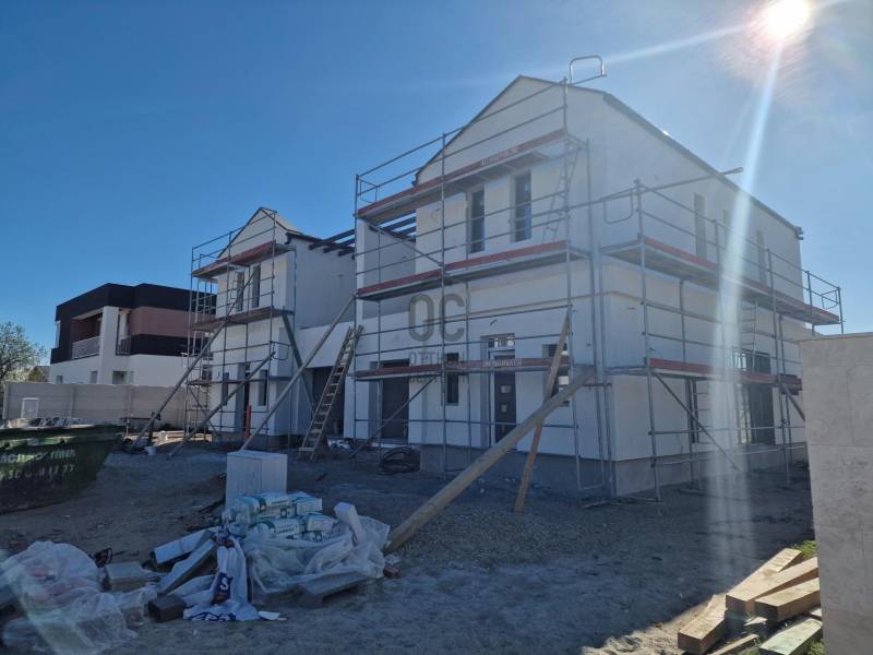 Eladó újépítésű utcafrontos ikerház Budapest XVIII. kerület Almáskert csendes mellékutcájában.137 nm hasznos alapterületű, amerikai konyhás nappali, 4 hálós, 2 fürdőszoba-wc, háztartási helyiség, kamra, garázzsal, terasszal, erkély és saját kerttel.Műszaki tartalom (részlet)- falazata 30-as Leier 10 cm-es grafitos szigeteléssel, lábazat 12 cm XPS szigetelés- válaszfalak 10 cm-es Leier tégla- födémen 20 cm-es kőzetgyapot szigeteléssel- hőszivattyú padlófűtéssel- 3 rétegű külső nyílászárókA fűtése hőszivattyús, padlófűtés az egész házban-választható vagy a nappaliban 3,5 kw-os klíma, vagy klíma kiállás kiépítése minden szobában!-elektromos tolókapu,-elektromos garázskapu,-napelem előkészítés,-komplett kamerarendszer riasztóval beépítveAmi vételár részét képezi:Meleg burkolat: 5000ft/m2 amely tartalmazza a filc alátétet és a szegélyt is.Hideg burkolat: 5000ft/m2 amely tartalmazza a fugát és a burkolat váltókat is.Belső tartozékok, szaniter árak:-beltéri ajtó kilinccsel 80.000 Ft/db-kád tartozékaival 80.000 Ft/db-csap 20.000 Ft/db-mosdó 20.000 Ft/db-plusz víz csatorna kiállás kérésre 50.000 Ft/db-villanykiállás fejegységenként 30.000 Ft/db-Kerti csap ára kompletten szerelve: 100.000 Ft/dbszaniterek belső nyílászárók készültségi foktól függően választhatók.Megbeszélés és egyeztetés alapján kérhetők plusz extrák és változtatások!Az ingtlan Almáskert újépítésű kertvárosi részén lesz található, központhoz közel, jól megközelíthető helyen.A lakás az összes jelenleg futó támogatásra jogosult!Az ingatlan 30% önerővel lefoglalható!Várható átadás 2026 május vége.„Az energetikai tanúsítvány készítése folyamatban van, amint rendelkezésre áll, úgy azzal a hirdetés frissítésre kerül.”Amiben segítünk :független Hitelszakértő, ügyvédi háttér!!Hívjon a hét bármelyik napján további információért!