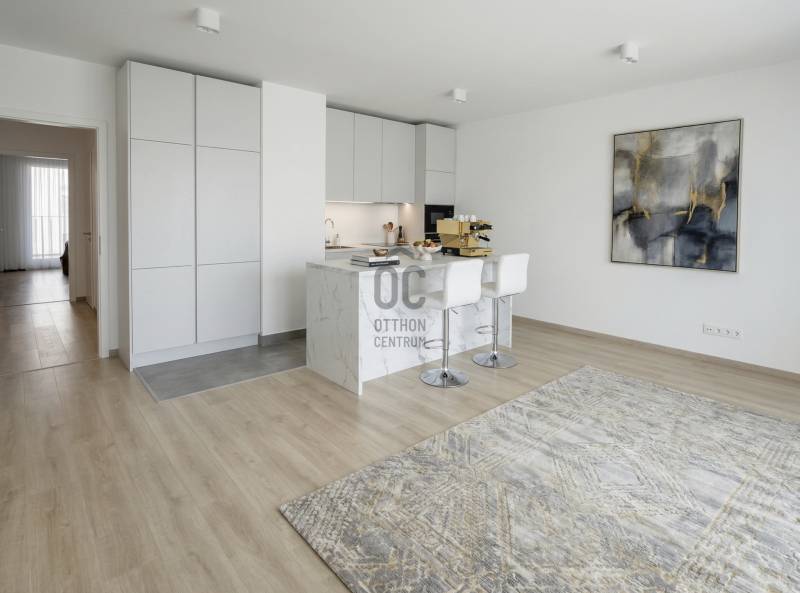 A Marina part egyik legújabb, 2024-ben átadott épületében, a Duna Terasz Grande 2. emeletén kínálok megvételre egy 86 m² alapterületű, négyszobás, duplakomfortos, prémium okosotthont, amelyhez 2 terasz tartozik, összesen 29 m²-en. Az ingatlan utcai és gondozott belső kertre néző tájolással rendelkezik, így egyszerre világos és nyugodt atmoszférát biztosít. A lakás teljesen új, még soha nem lakott.Főbb jellemzők:- 86 m² lakótér, 4 szoba (nappali + 3 hálószoba)- 2 terasz – összesen 29 m²- Duplakomfort (kádas és zuhanyzós fürdőszoba)- Prémium minőségű, gépesített konyha- Beépített bútorok- Okosotthon rendszer- A+ energetikai besorolás- Mennyezeti hűtés-fűtésA tágas nappali és a jól elkülönülő hálózóna ideális családok számára, míg a két fürdőszoba és a teraszkapcsolatok valódi kényelmet biztosítanak a mindennapokban.Elektromos autó töltésére alkalmas teremgarázs hely és tároló vásárlása opcionális.III. MARINA PART – Vízparti presztízs és folyamatos fejlődésA Marina part a főváros egyik népszerű vízparti városrésze, ahol a modern építészet, a zöld környezet és a kiváló infrastruktúra harmonikusan találkozik. A Duna-part közelsége, a parkosított sétány, az éttermek, kávézók és sportolási lehetőségek egy teljes életminőségi koncepciót alkotnak – mindössze 10 percre a belvárostól.A környék folyamatos fejlesztése tovább erősíti a lokáció értékét:a Cserhalom utca – Meder utca közötti, mintegy 750 méteres szakasz teljes megújuláson megy keresztül. Új burkolatot kap az útpálya, járda és kerékpárút épül, korszerűsítik a közvilágítást, parkolóhelyeket és buszöblöket alakítanak ki, három új körforgalom létesül, valamint új gyalogoshíd épül a Rákos-patak felett. A beruházás részeként több mint 200 fa telepítése, új park, kutyafuttató és sétány kialakítása, valamint korszerű öntözőrendszer telepítése is megvalósul.Ez nem csupán egy lakás, hanem egy hosszú távon is értékálló, prémium környezetben elhelyezkedő otthon.Amennyiben szeretné személyesen is megtekinteni ezt a kivételes adottságú ingatlant, várom hívását.+ Az energetikai tanúsítvány készítése folyamatban van, amint rendelkezésre áll, úgy azzal a hirdetés frissítésre kerül.