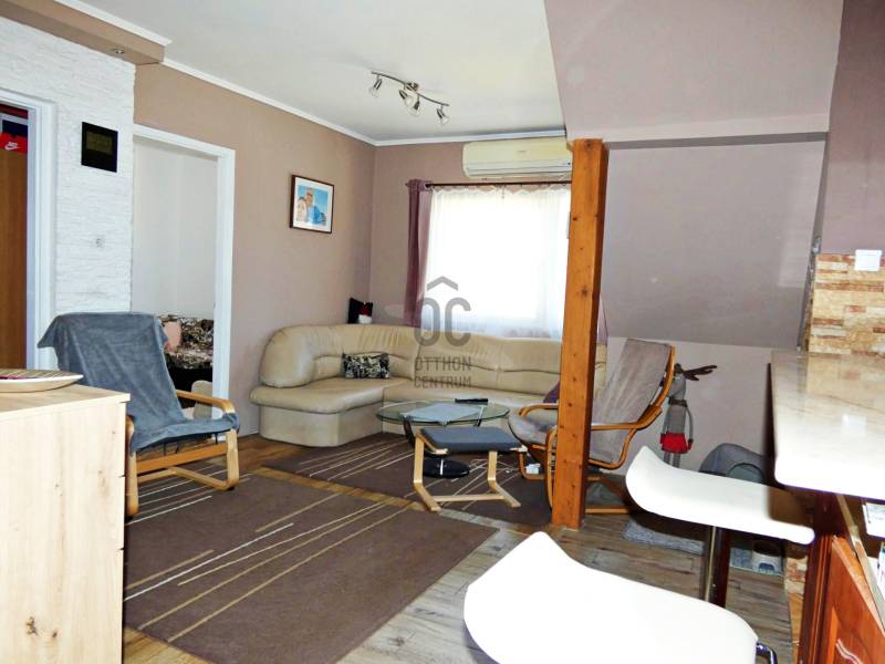 Családi ház, Otthon Start Program (3%), XVII. kerület.A XVII. kerületben, Rákoskeresztúron, csendes környezetben, még is kiváló közlekedési lehetőségek mellett, 2 szintes nettó 170 nm-es, 7 szobás, 2 félszobás, DNy-i tájolású, kevés ráfordítással 2 generációssá alakítható családi ház eladó. Az ingatlan a mellete lévő kisebb házrésszel osztatlan közös telken helyezkedi el. Társasházzá alakultak, elővásárlási jog nélkül. A földszinten nappalit 4 teljes értékű szobát, konyhát, fürdőszobát, külön WC-t, kamrát, és egy 25 nm-es teraszt találunk. A terasz teljes méretében alápincézett.Az emeleten nappalit, 1 szobát, 2 félszobát, konyhát, fürdőszobát, külön WC-t és erkélyt alakítottak ki. Minden helyiségben műanyag keretes, hő- és hangszigetelő ablakok vannak. Az ingatlan melegét gázkazán biztosítja, míg a meleg vizet villanybojler szolgáltatja.Az épület mögött tégla építésű mellék épület helyezkedik el, ami eredetileg garázsnak épült, ez a funkció könnyűszerrel visszaállítható. Az ingatlan sok lehetőséget rejt, ezek leírását meg se’ kísérlem. A környék jól ellátott, bevásárlási lehetőség gyalog távolságra, két buszmegállónyira orvosi rendelő, gyógyszertár, posta, kormányablak, banki szolgáltatások találhatóak.Buszmegálló 2 perc gyalogtávolságnyira, az Örs Vezért 20 perc alatt elérhető.Az ingatlan megvásárlásához igénybe vehető a 3%-os fix kamatozású Otthon Start Hitel.Amennyiben ez az ingatlan felkeltette az érdeklődését, várom megtisztelő hívását a hét minden napján.
