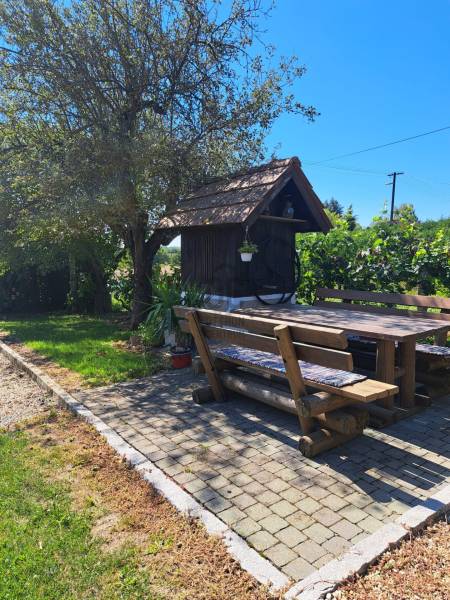 Körmendtől 13 km-re Döröskén, vegyes falazatú tégla és vályog családi ház 1 km-re a Döröskei tótól eladó! A ház egyszintes, melynek lakóterében 3 darab külön nyíló hálószoba, konyha mely étkezésre is alkalmas, egy zuhanyzóval és káddal ellátott fürdőszoba, valamint egy külön helyiségben található toalett lett kialakítva. Nyílászárói hőszigetelt műanyagok. Fűtése gáz központi fűtés. Csatorna nincsen a faluban, zárt derítős. A telek 2500 nm.A házzal egybeépülve kialakítás került egy külön bejáratú úgynevezett Party helyiség , ahol a család, barátok, ismerősök együtt ünnepelhetik a feledhetetlen pillanatokat, legyen szó akár egy kerti buliról, születésnapról, vagy egyéb összejövetelről.A házhoz tartozik továbbá egy zárt műhely rész, amely minden kézi szerszámokkal felszerelt amelyek az esetleges javításokhoz és a ház időnkénti karbantartásához szükségesek. Továbbá fedett kocsibeálló , illetve utánfutó- vagy egyéb kerti gépek tárolására alkalmas szintén fedett tároló rész található az ingatlanban. Az ingatlan vételára tartalmazza a ház teljes berendezését, bútorokkal, gépekkel és egyéb berendezésekkel, felszerelésekkel együtt. Új tulajdonosa azonnal beköltözhet új otthonába, mely már berendezve várja lakóját, megkímélve őt a költözés minden egyéb fáradalmától. A ház 2003-ban teljes körű átalakításon és bővítésen esett át. A felújítás kiterjedt: a teljesen új vízhálózatra, villanyrendszerre, fűtés korszerűsítés kiépítésére! Új gázkazán, és új radiátorok lettek beszerelve! A ház teljes tetőszerkezete ki lett cserélve. Az építkezés teljes folyamatáról fényképek lettek készítve, jelenlegi tulajdonosa kérésre megmutatja őket! Mivel a ház falazata vastag, nyáron gyakorlatilag klímaként funkcionál, nincsen szükség klíma berendezések beszerelésére! A kert gyönyörűen van karbantartva, parkosítva, örökzöld növényekkel, minden évszakban nyíló virágokkal, számtalan gyümölcsfákkal, konyha kerttel. A kert elülső részén egy fedett kiülős fa pavilon, kerti kút padokkal. A telek hátsó részében lehetőség van egy nagyobb méretű medence felállítására, mely körül teljesen térkövesített, ahol egy kis külön álló fa házikóban lehet tárolni a medencéhez szükséges kellékeket. Az egész telek zárt, körbekerített. A telek végén lehetőség van elvonulásokra, meditációra az árnyékot és hangulatot adó fákkal körülvett árnyas és nyugodt erdős részen. Bográcsozó, grillsütő minden meg van oldva! Sőt a tornác fedett részére kiülve, akár reggelizés közben vagy akár az esti meghitt beszélgetések közben a csend, béke, meghitt együttlét 5 csillagos otthont varázsol az otthonából.Kérésére további képeket is tudok küldeni az ingatlanról! Az ingatlan tehermentes, tulajdoni viszonyok rendezettek. A környék csendes és biztonságos, könnyen megközelíthető, ami lehetővé teszi, hogy valóban otthon érezze magát.Bármilyen kérdése van az ingatlannal vagy a vásárlási folyamattal kapcsolatban, megszeretné tekinteni, keressen bizalommal!Ügyfeleinket ingyenes szakszerű tanácsadással látjuk el, bank-semleges hitel-ügyintézésben segítjük, illetve leszervezzük a teljes adás-vételi folyamatot!