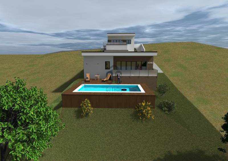 *Rendezett környezetben*ideális 1100m2-es telken *Nettó 157m2 alapterületű *Új építésű*Nappali + 4 szobás*PanorámásCsaládi ház várja új tulajdonosát! Prémium műszaki megoldások és anyaghasználat:- Falazat: POROTHERM 30 tégla és POROTHERM 10 válaszfallapok- Födémszerkezet: monolit vasbeton szerkezetű födém- Bádogos szerkezetek: rejtett ereszcsatornák, lefolyó; falsík bádogozások- Szigetelés: 20 cm EPS hőszigetelés homlokzati felületeken, lapostetőkön 30 cm vastagságú Austrotherm AT-N100 szigetelés.- Homlokzati felületképzés: (Baumit szilikon) finomszemcsés nemesvakolat, törtfehér színben.- Lapostető: PVC vízszigetelés, zöldtető- Nyílászárók: műanyag szerkezetű ablakok, teraszajtók és bejárati ajtó háromrétegű hőszigetelő üvegezéssel, külső oldalon szürke színben alumínium borítással- Az ikerházrész külön bejárattal lesz elérhető.További extrák:- rejtett tokos redőnyök elektromos mozgatással- tetőteraszokon, teraszokon üvegkorlát készül- fűtés és melegvízkészítés hőszivattyúval történik, padlófűtéssel és mennyezet hűtéssel- 8*4 m medence szerkezet gépészet, fólia és burkolat nélkül- telekrész térburkolása 6 cm vastag kiselemes térkő burkolattal (parkolót megközelítő útvonal)Jelenleg az ingatlanon az alapozási munkálatok zajlanak.Fűtéskész műszaki tartalomnak NEM RÉSZE az alábbi munkák elvégzése:- belső padló-, falburkolatok beszerzése és kivitelezése- belső festési előkészítési és festési munkák elvégzése- belső ajtók beszerzése és elhelyezése- gépészeti berendezések beszerzése és elhelyezése (kivéve hőszivattyús rendszer)- gépészeti szaniter berendezések beszerzése és elhelyezése- villamos szerelvények beszerzése és elhelyezése- konyhabútor gyártása, beszerzése, elhelyezése- egyéb bútorozási munkák elvégzése- lépcsőburkolat, lépcső korlát gyártása, beszerzése és kivitelezése (kivéve teraszokon üvegkorlát)- terasz burkolat beszerzése, kivitelezése- saját használatú kerten belüli kertépítési munkák, térburkolásFenti munkákat vállalkozó csak a megrendelő(k)kel kötött külön kivitelezési szerződés megkötése esetén végzi el!Hívjon a hét bármely napján, nehogy lemaradjon!Hitelre van szüksége?Az Otthon Centrum az ország egyik legnagyobb és legmegbízhatóbb hitelközvetítőjeként,teljes körű és díjmentes hitelügyintézéssel, biztosításkötéssel áll rendelkezésére!Kérje személyre szabott ajánlatunkat Kollégáinktól!